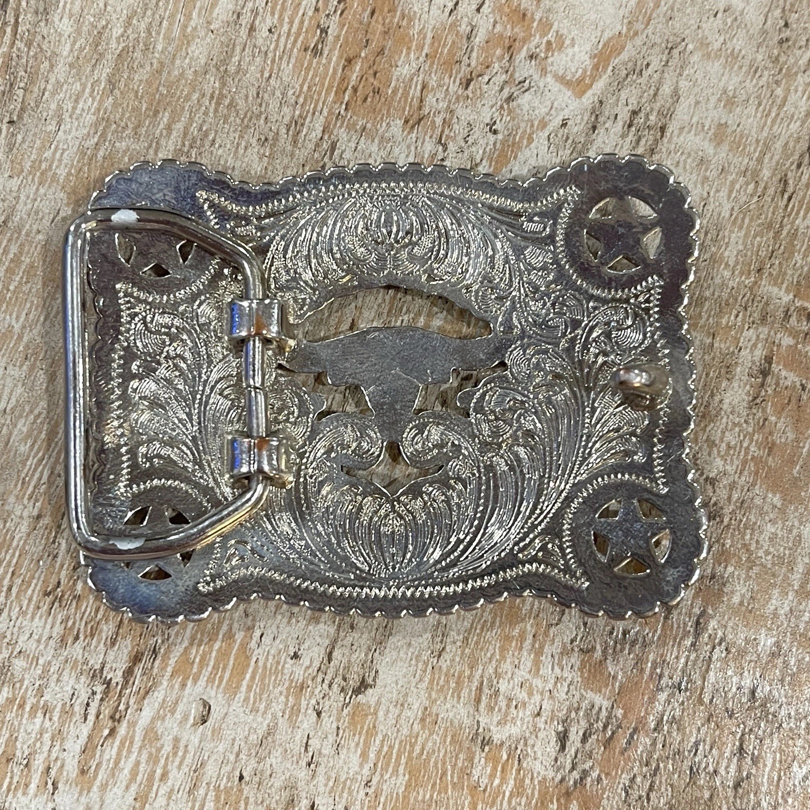 Nocoa Youth Longhorn Belt Buckle Silver Tone 28 manmade Tooled Leather Belt