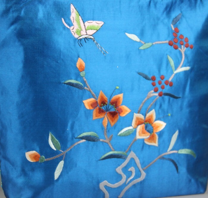 • Chinese 100 Handmade Embroidery silk handbag:flower butterfly