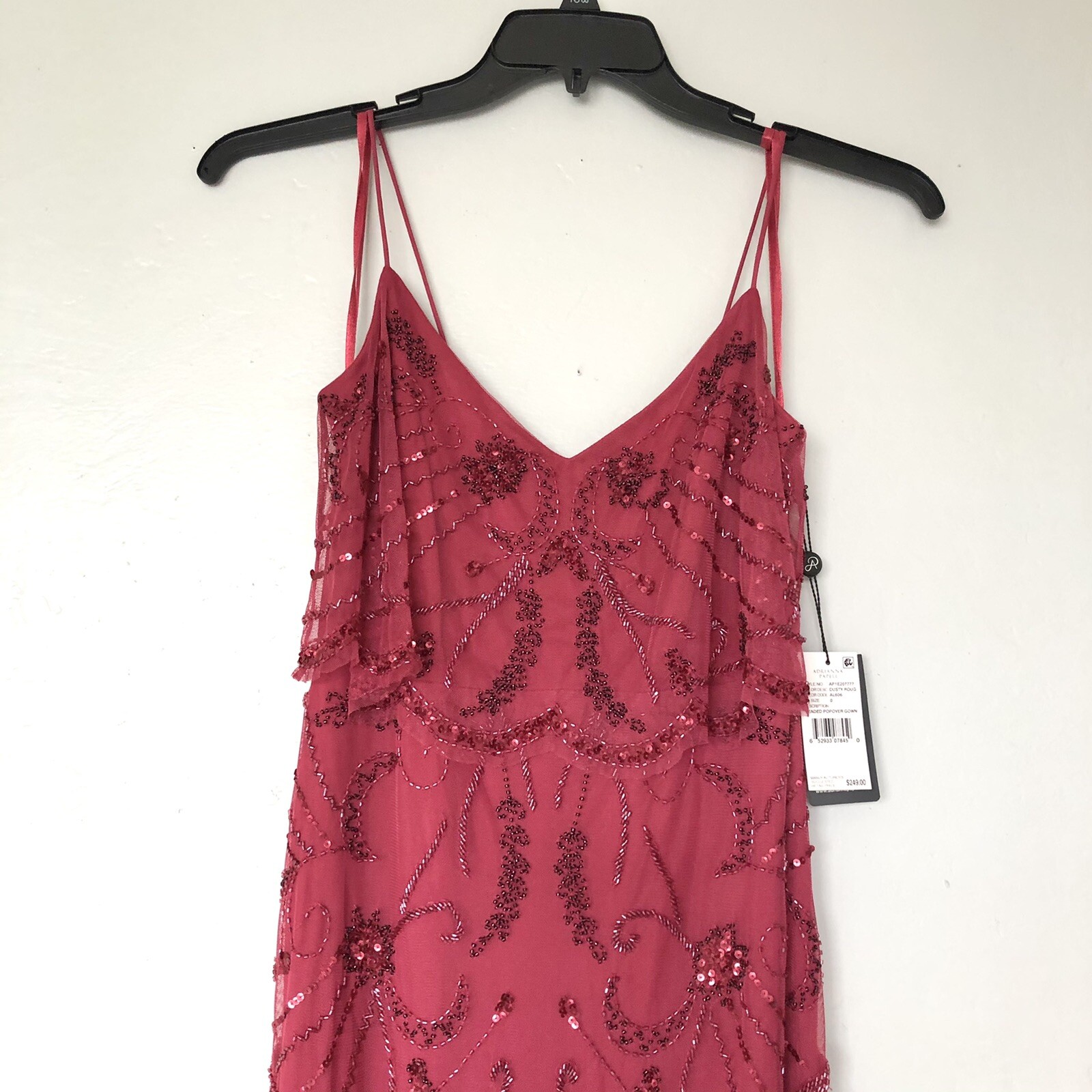 Adrianna Papell Beaded Mesh Popover Gown in Dusty Roug/Red Size 2