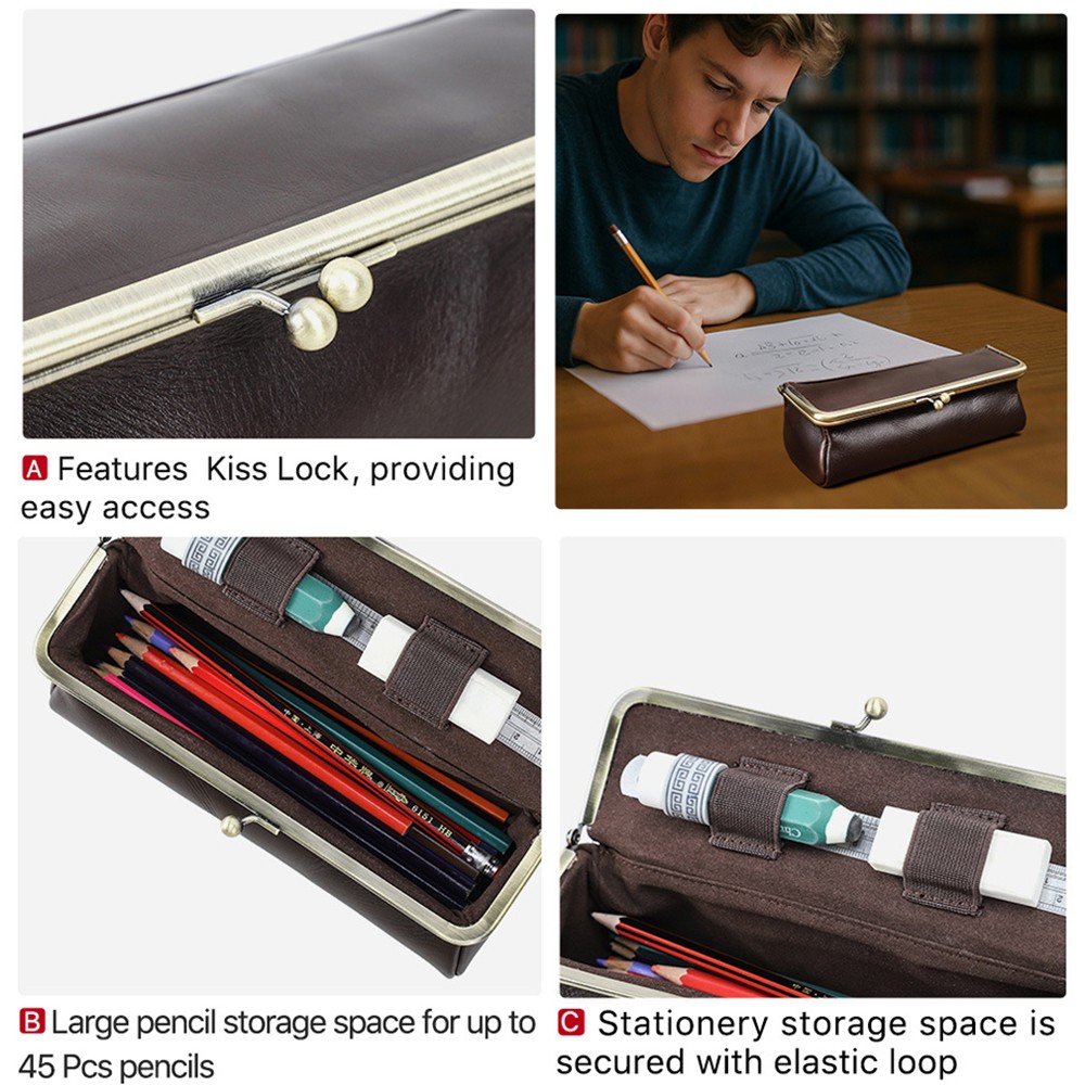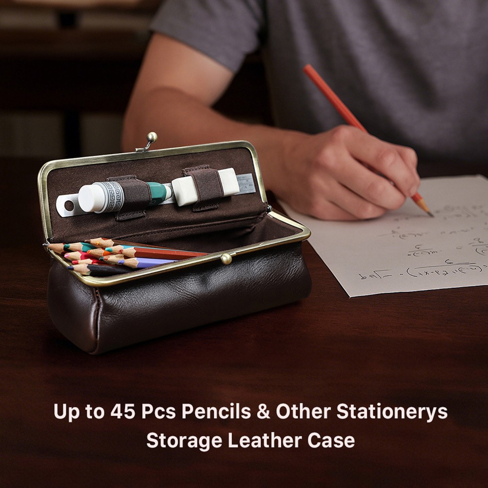 • Genuine Leather Pencil Case Large Capacity Multifunction Stationery Storage Bag