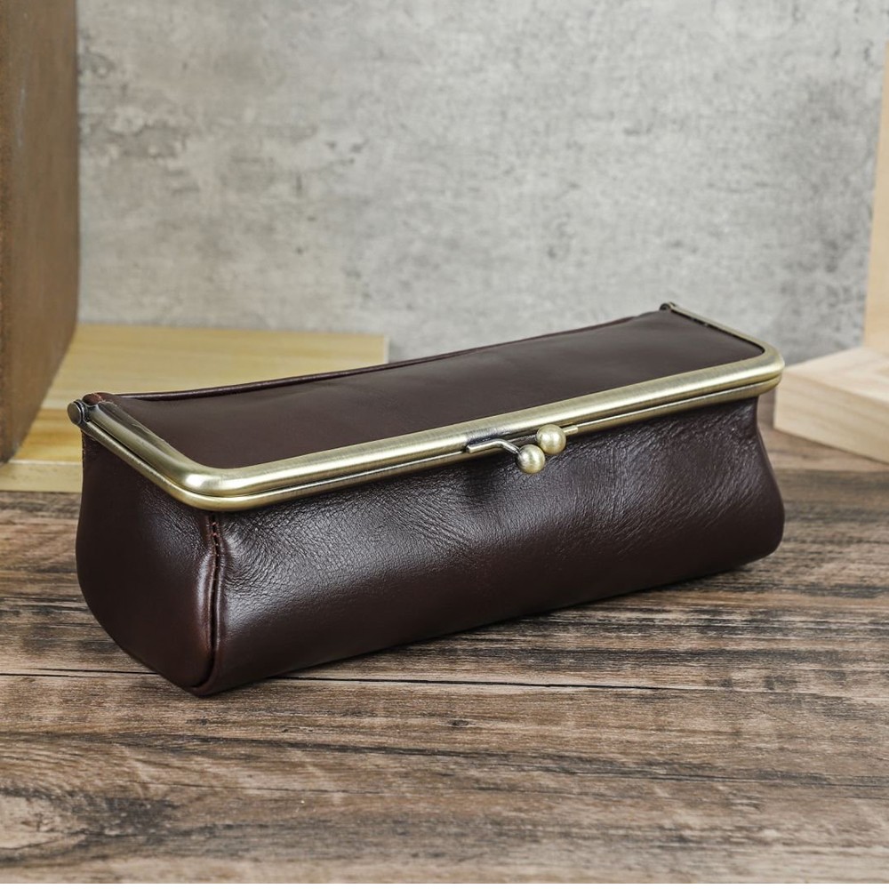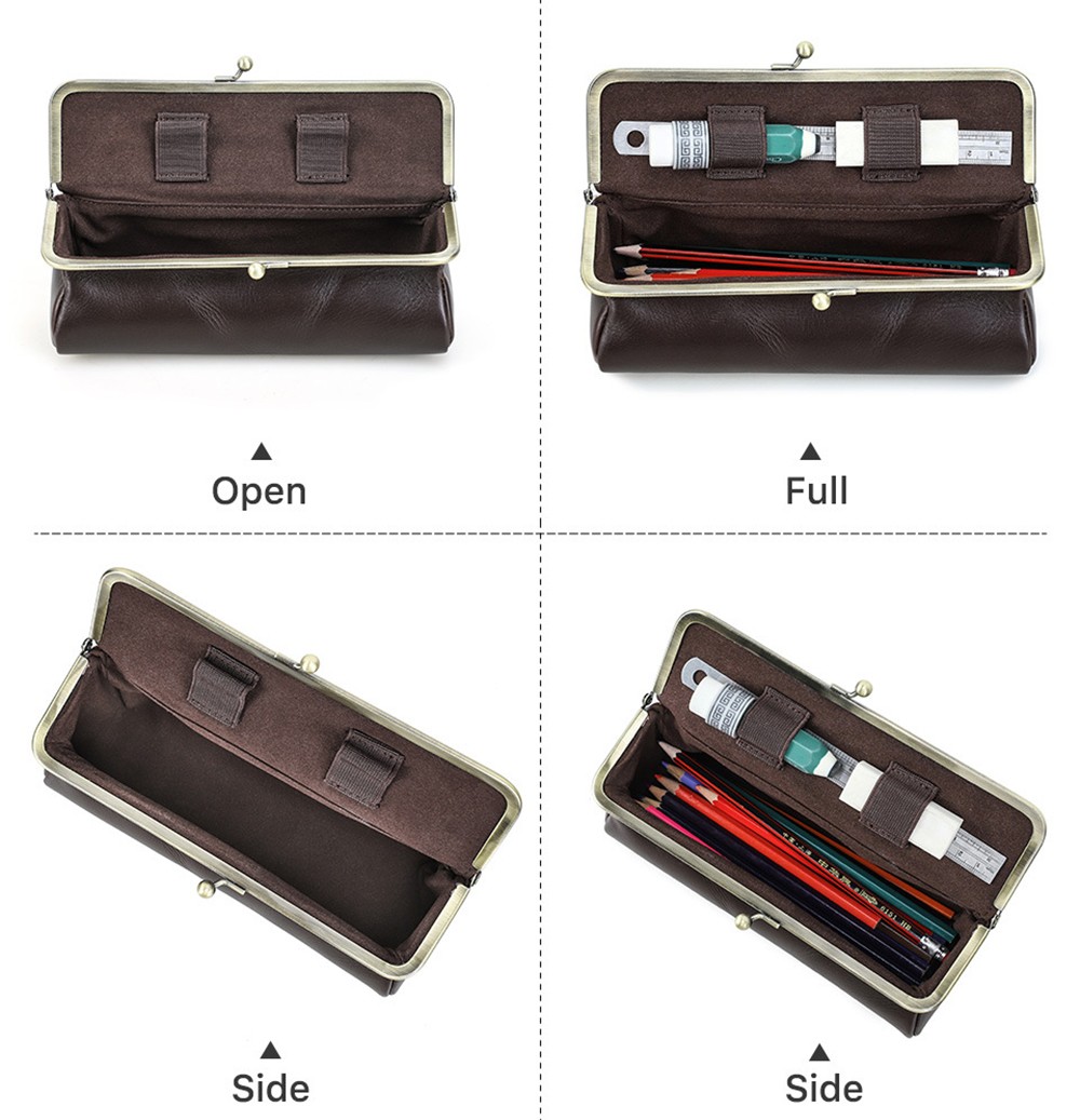 Genuine Leather Pencil Case Large Capacity Multifunction Stationery Storage Bag