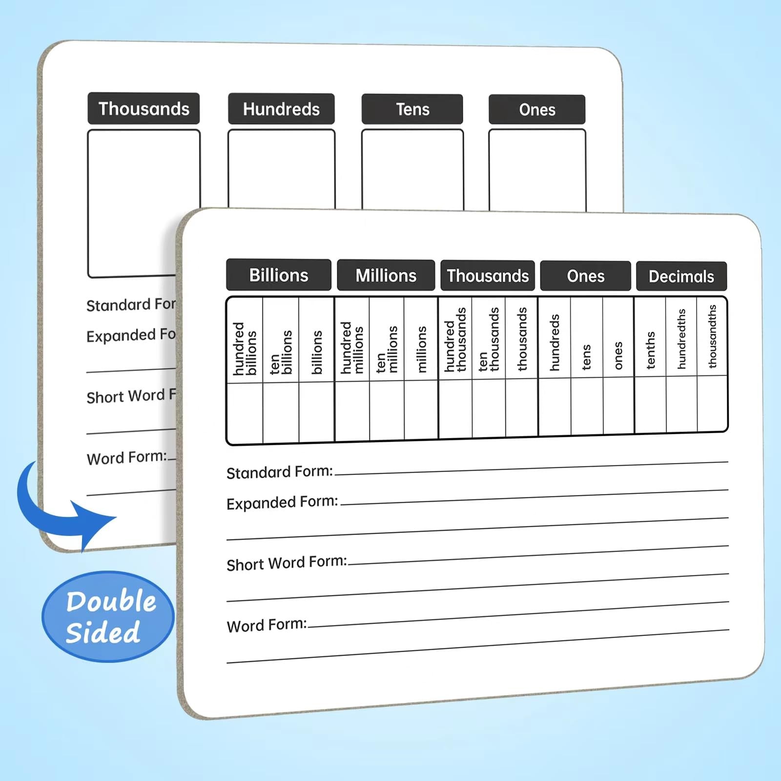 9x12 Double Sided Dry Erase Place Value Board for Students Math Lapboard