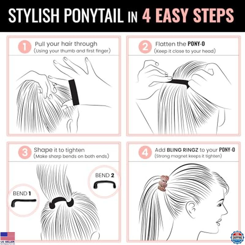 2 Count Medium Hair Accessory Set - Bendable Hair Ties Pearl Bling Rings
