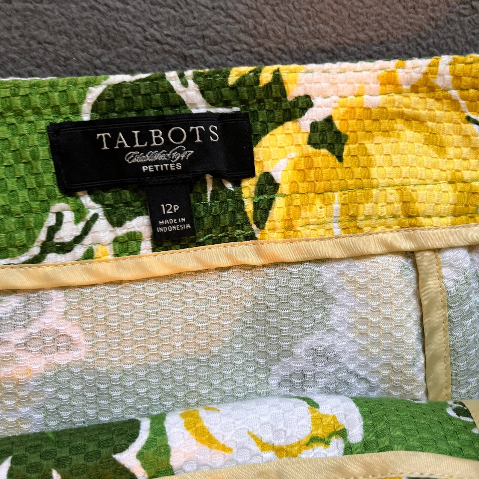 как выглядит Talbots Petite Floral Skirt Womens Size 12 Green Yellow Retro Buttons A-Line фото