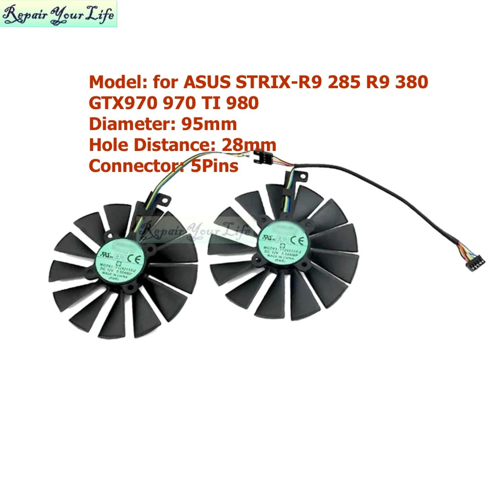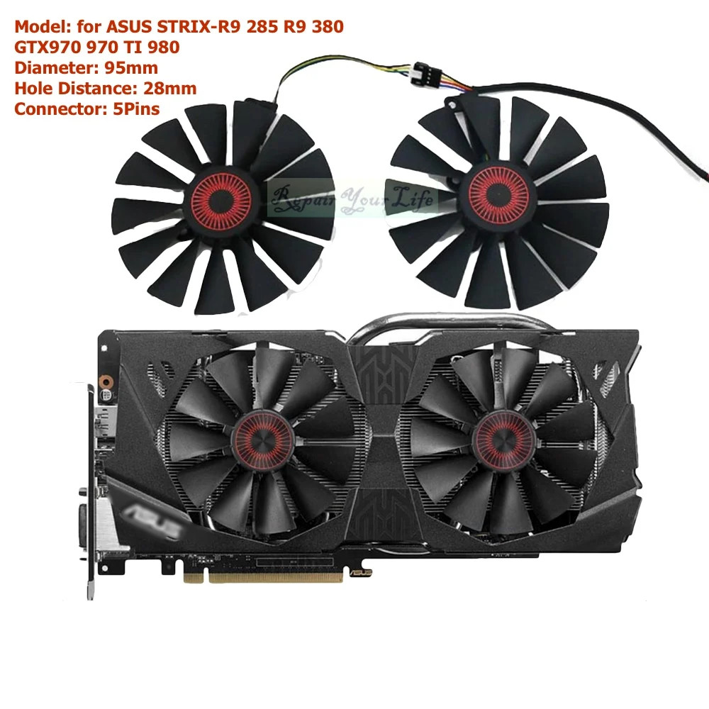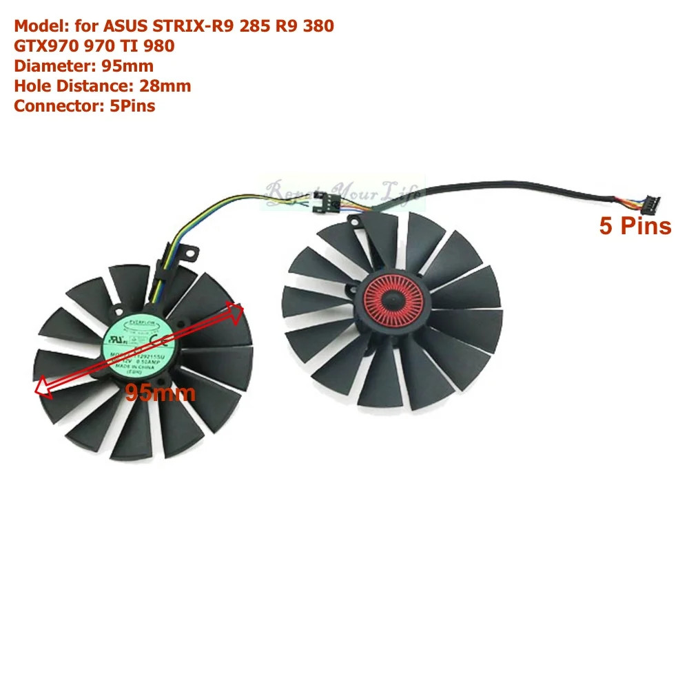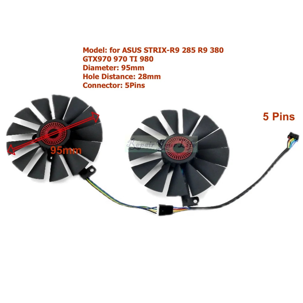 95mm VGA GPU Fans Cooler for ASUS GTX970 970 TI 980 780 STRIX-R9 285 380 5Pins