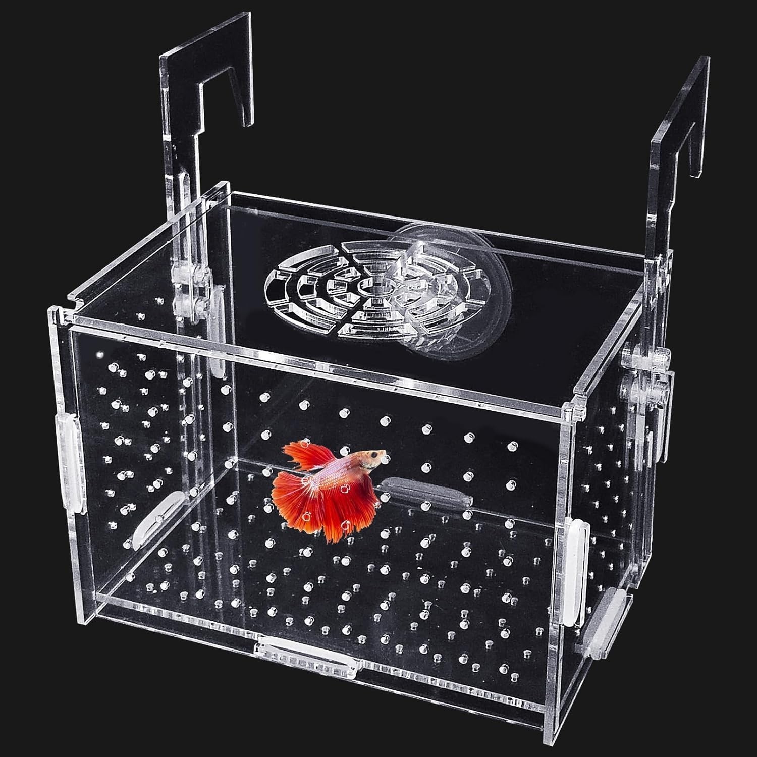 Transparent Fish Isolation Tank - 5.9 Acrylic Breeding Box for Shrimp Guppy