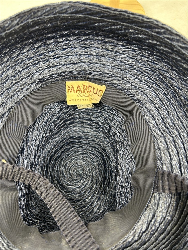 как выглядит antique hat straw tip/tilt womans original 1940s navy blue фото