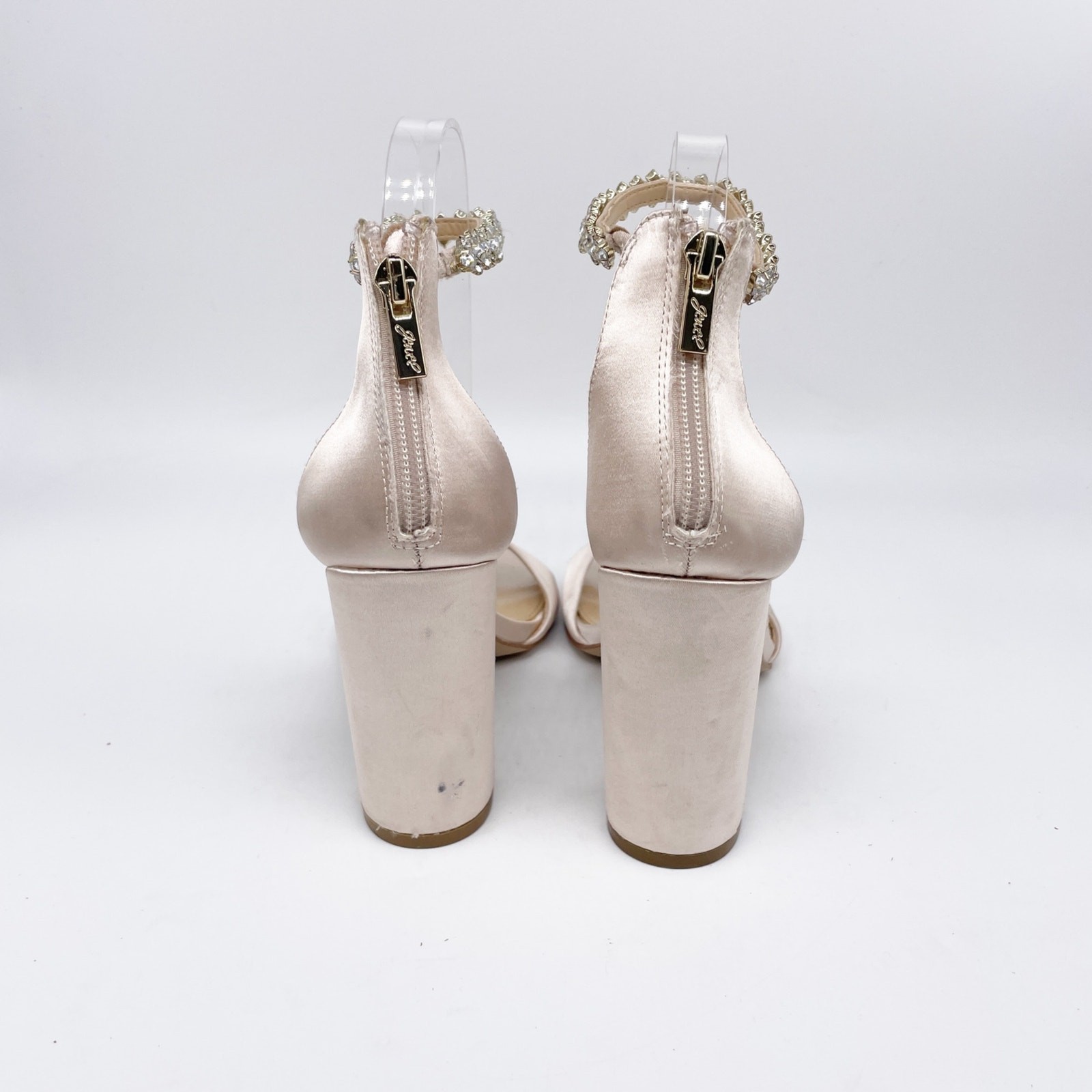 как выглядит Jewel Badgley Womens Mischka Louise Textile Champagne Block Heel Sandal Size 7 фото