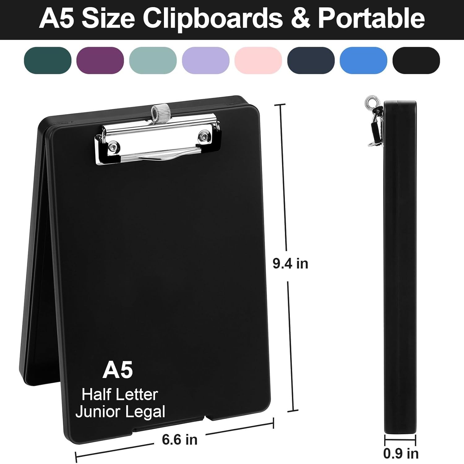 Small Clipboard with Storage, A5 Clipboards with Pen Holder, Half Letter Black