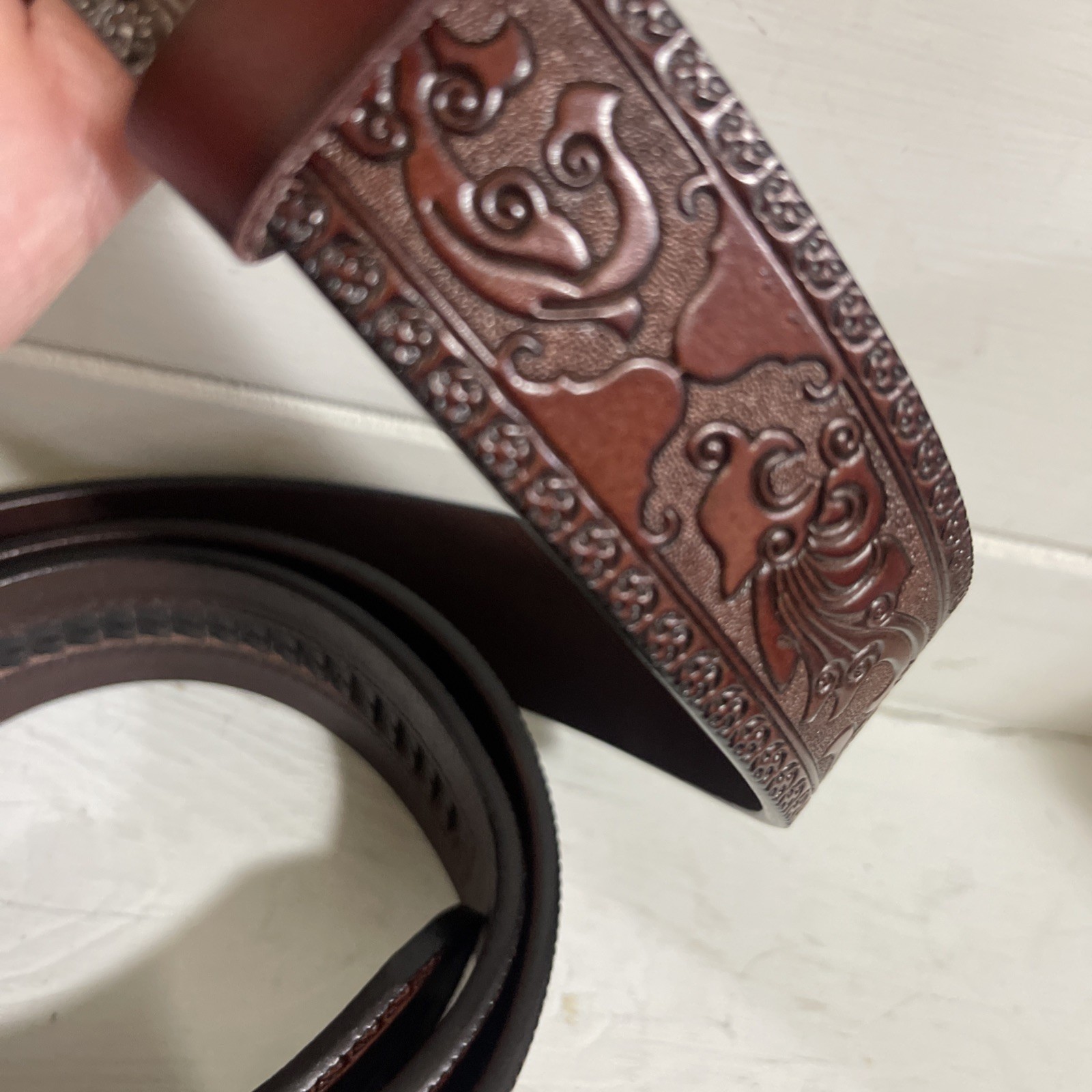 как выглядит Mens Belt Buckles Holeless Leather Automatic Ratchet Removable Click Slide фото