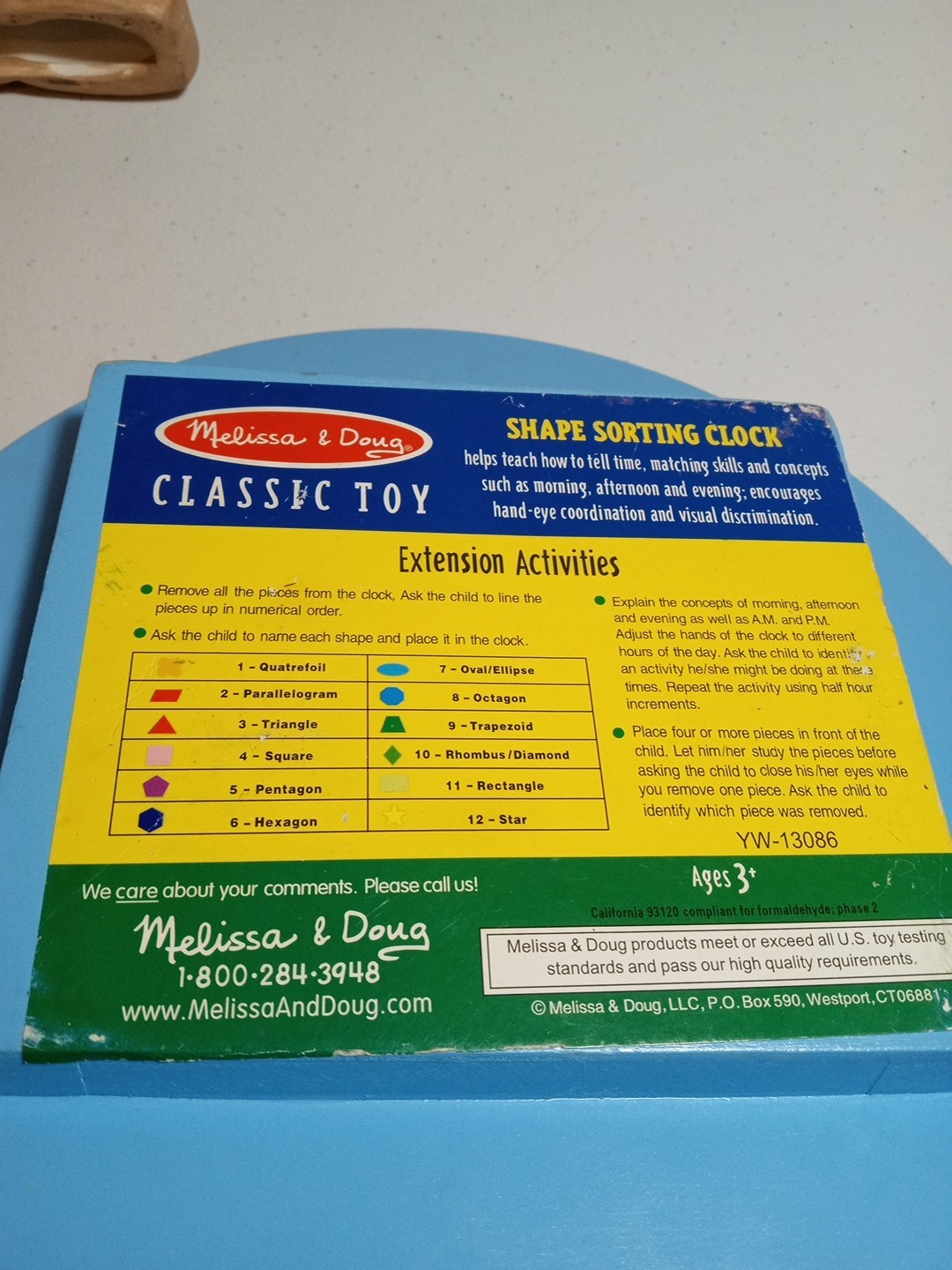 Melissa Doug Wooden Shape Sorting Clock Educational Toy Puzzle Time Numbers