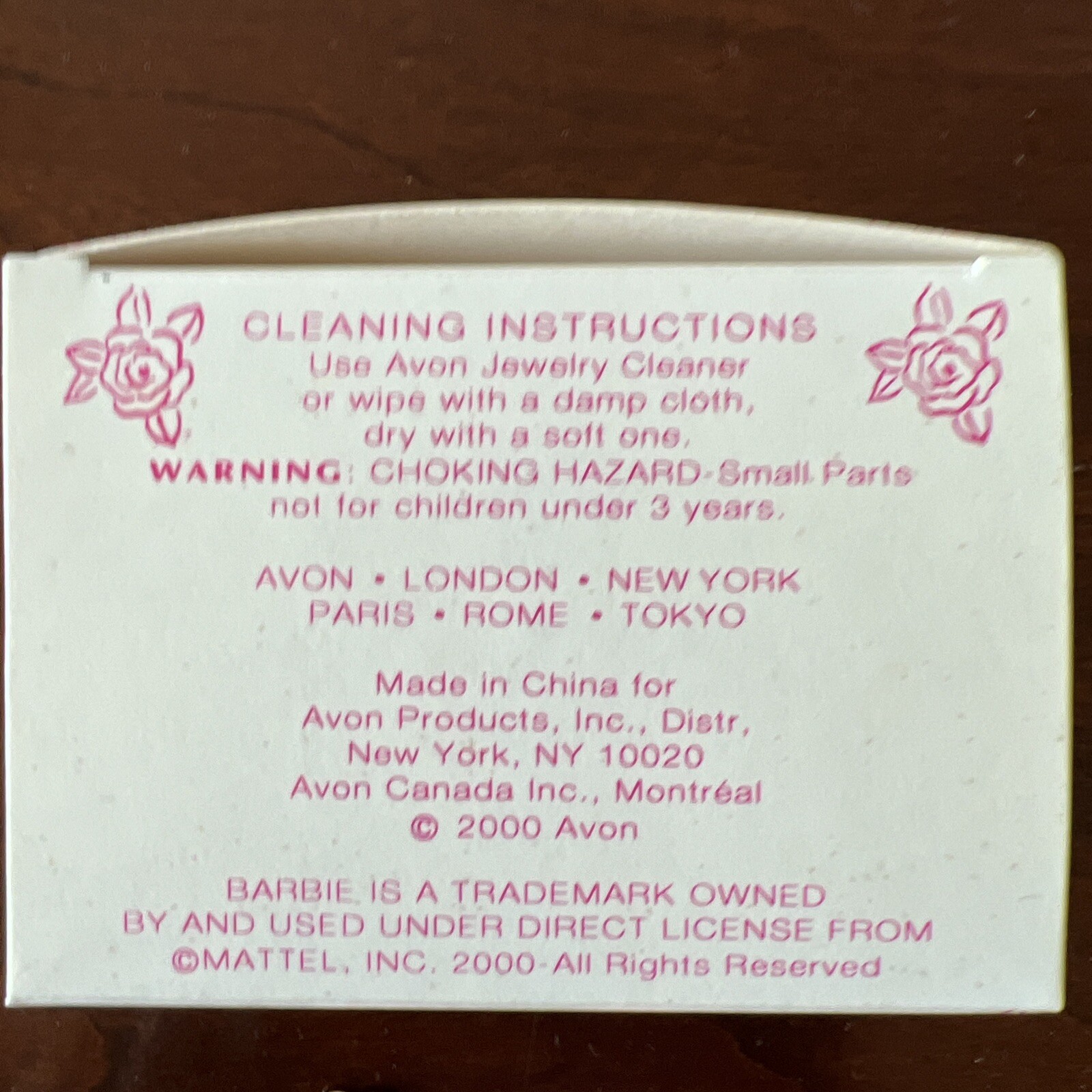 AVON 2000 Kids Barbie Mattel Pink White Bead Bracelet W/Gold Pendant Ring SET