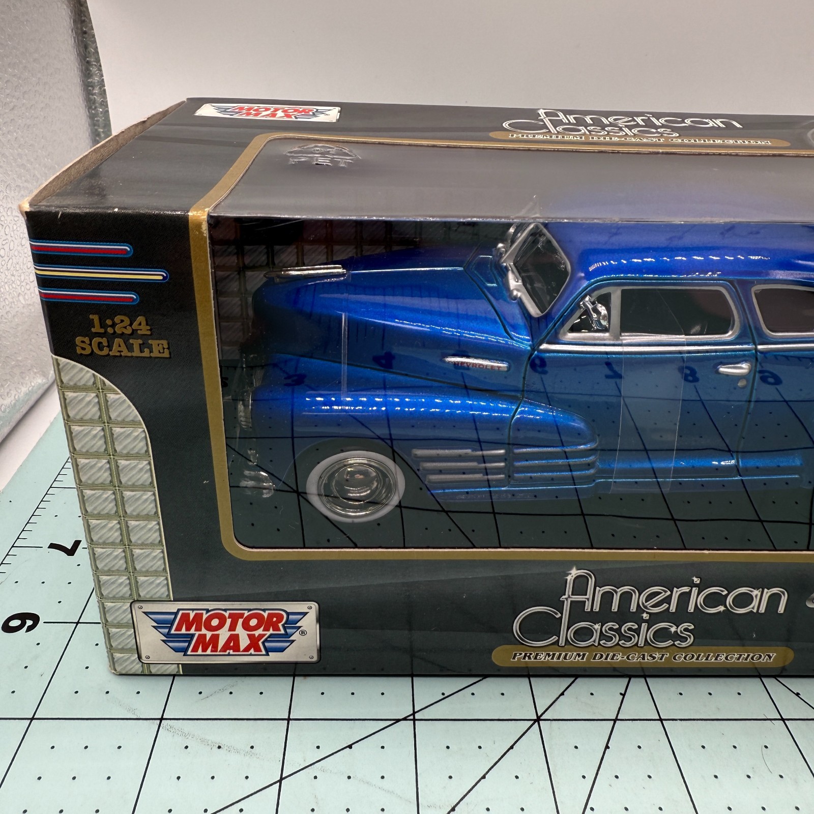 как выглядит 1948 Chevrolet Aerosedan Fleetline Blue 1/24 Diecast Model Car by Motormax фото