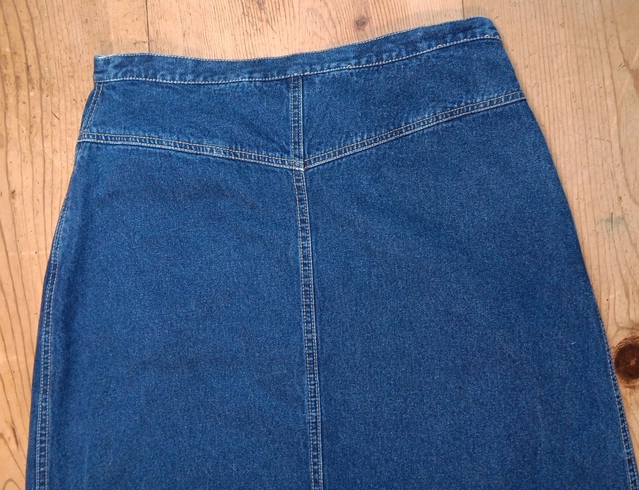 как выглядит Vtg 90s Bugle Boy Gold Crest Womens 10 Maxi Denim Skirt Blue Jean Cotton Slit фото