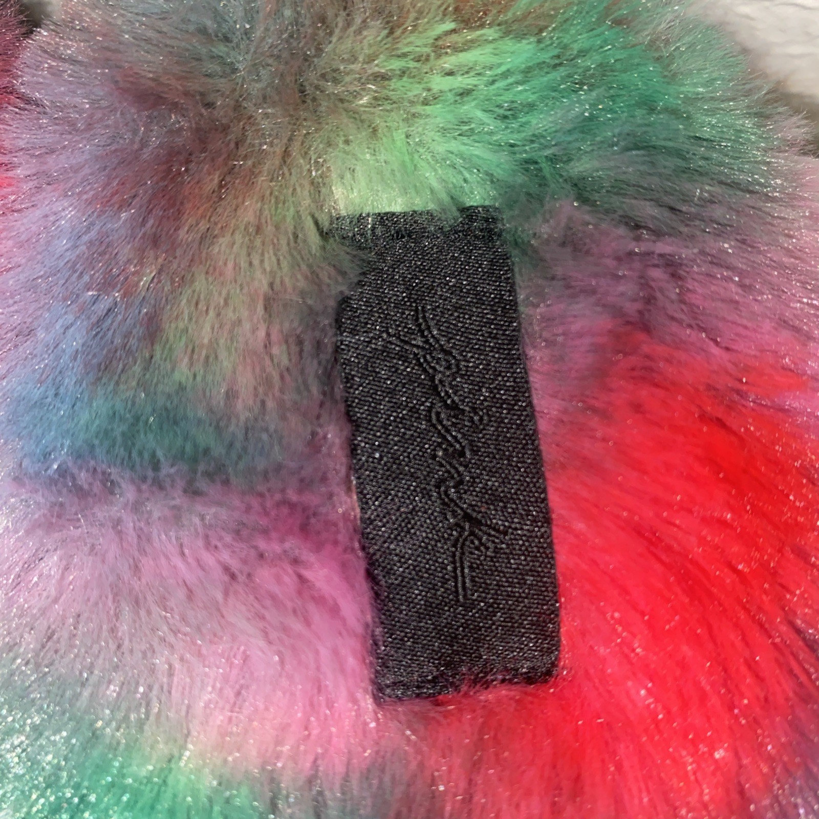 как выглядит NWT Victoria s Secret PINK Faux Fur Slippers colorful Dahlia Blur Size S 5-6 фото