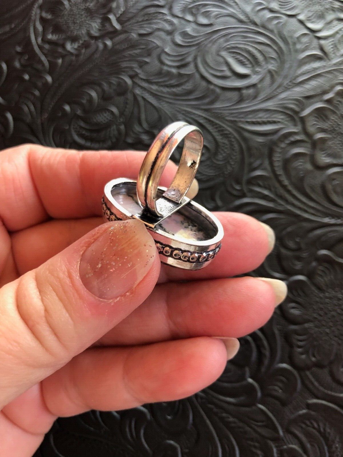 Artisan Southwest Peruvian Pink Opal Strawberry Oval Ring Droplet Bezel Size 7