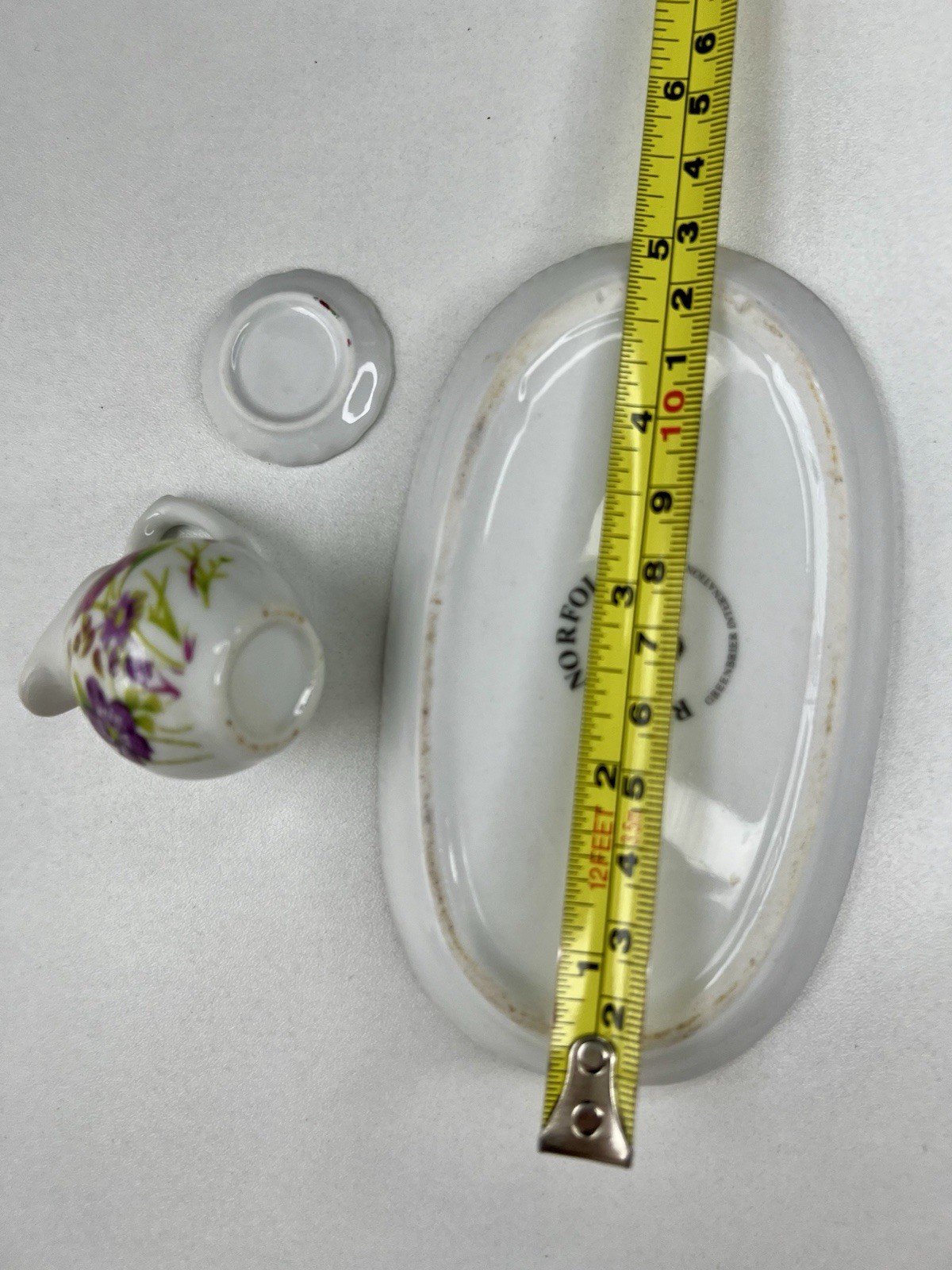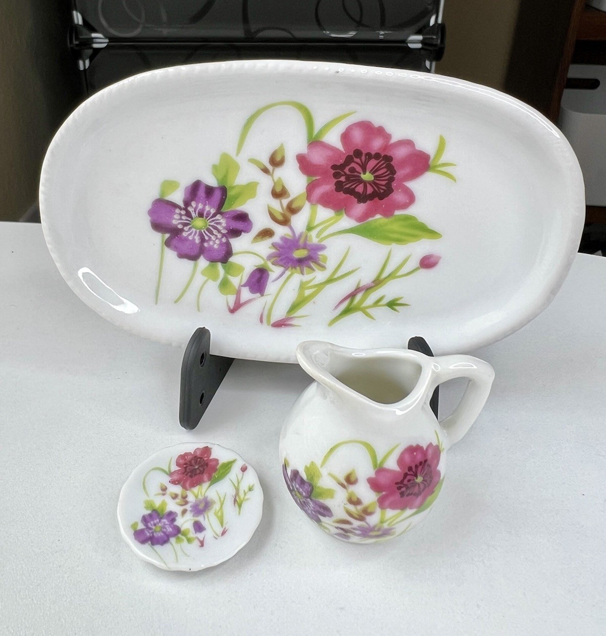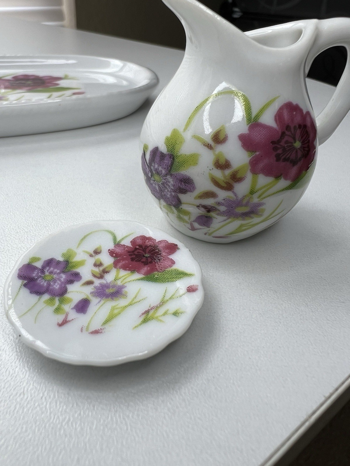 как выглядит Royal Norfolk White Porcelain Miniature Tea Set Purple Flowers PARTIAL 5 Tray фото