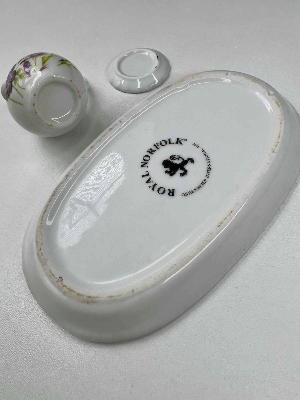 Royal Norfolk White Porcelain Miniature Tea Set Purple Flowers PARTIAL 5 Tray