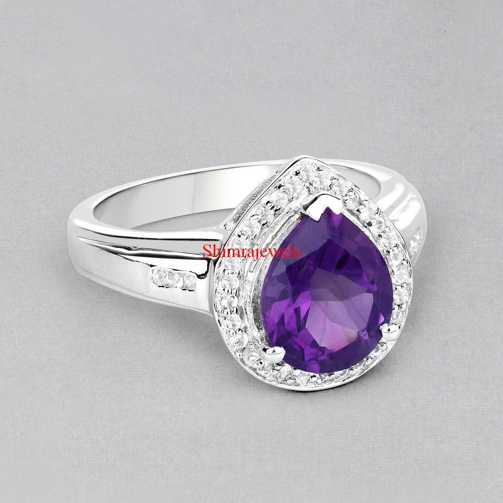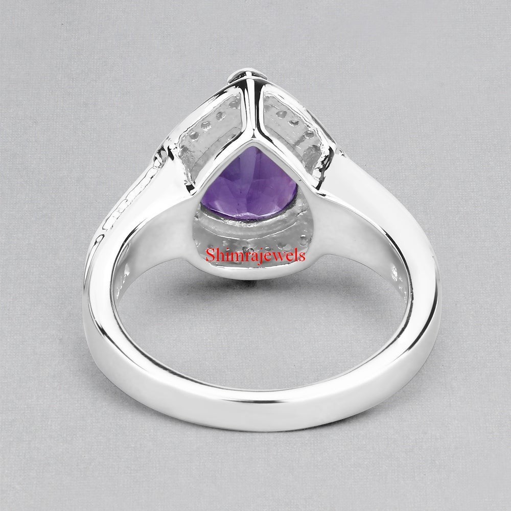 Natural Amethyst Gemstone With 18k White Gold Plated Silver Women's Ring 237