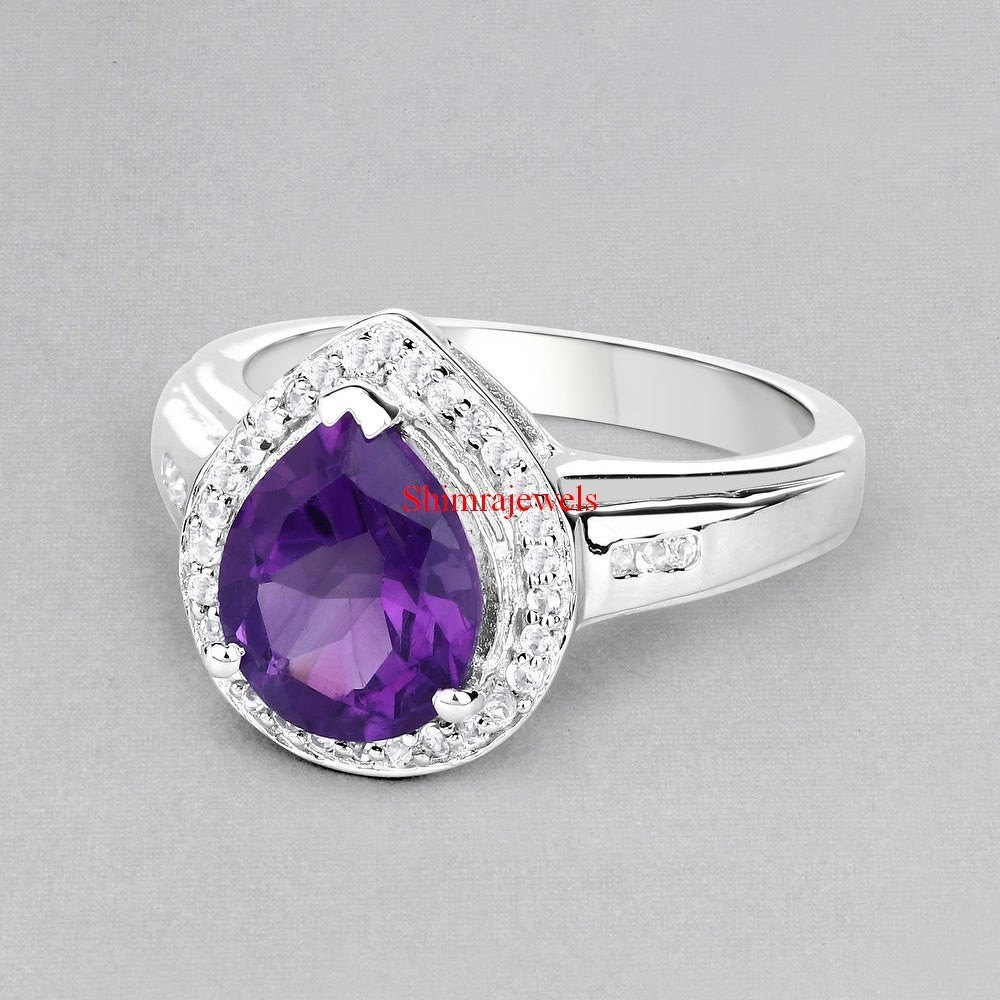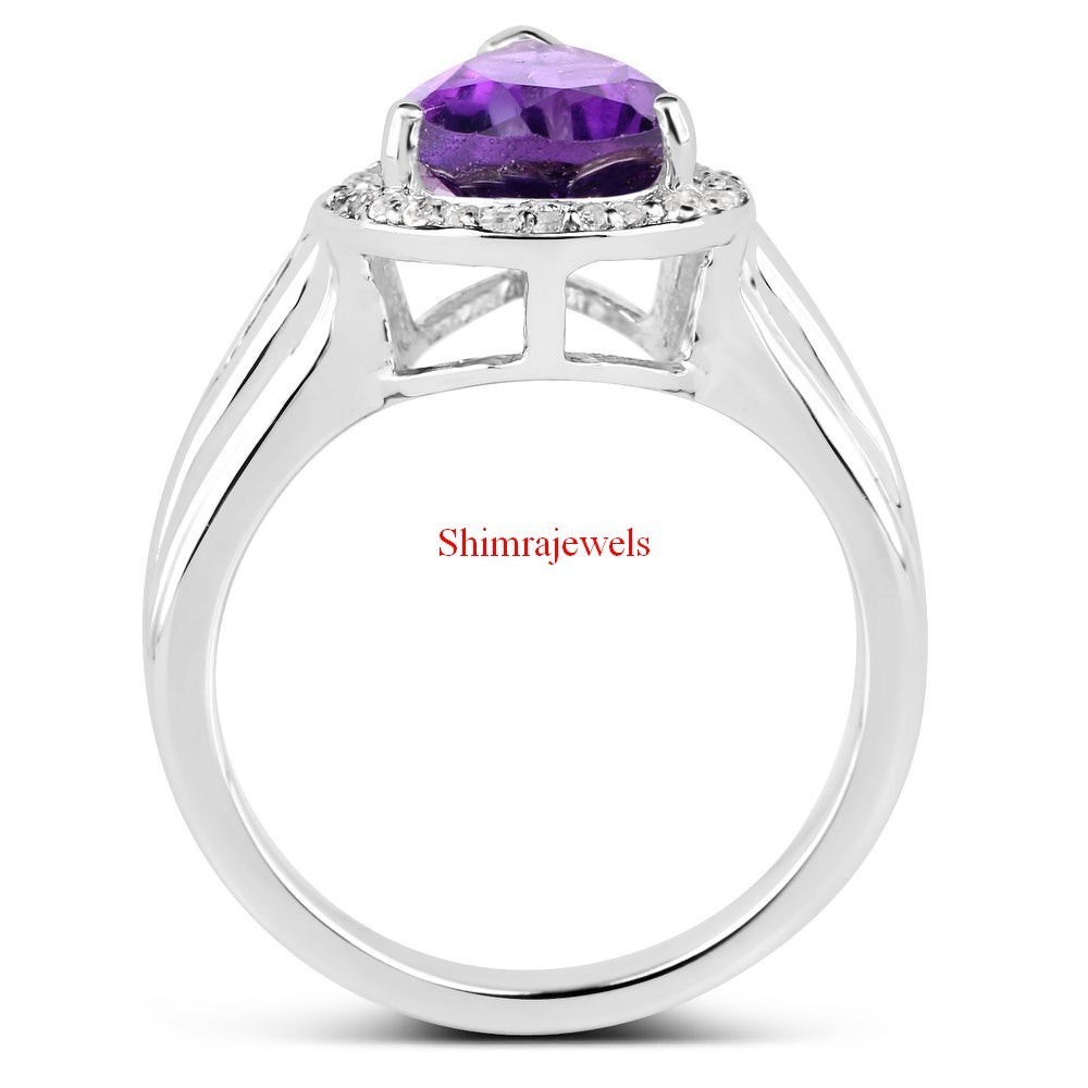 как выглядит Natural Amethyst Gemstone With 18k White Gold Plated Silver Womens Ring 237 фото