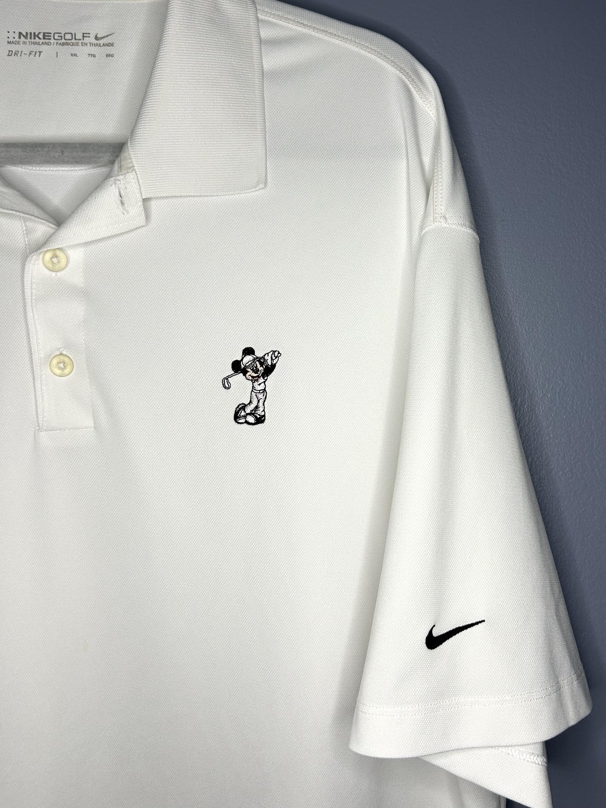 Nike Golf Polo Shirt Mens 2XL White Dri-FIT Walt Disney World Mickey Mouse Golf