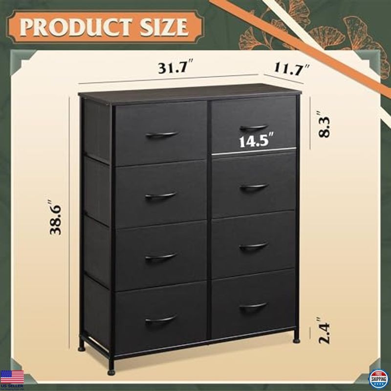 Tall Fabric Dresser with 8 Drawers, Storage Tower, Chest for Bedroom, Charcoal