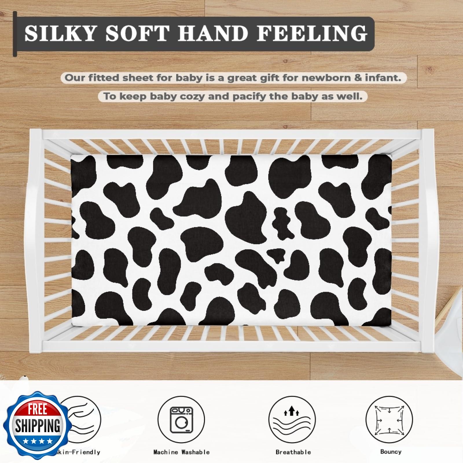 Winpema Cow Pattern Fitted Crib Sheet Black White Cowhide Baby Crib Sheet Fit