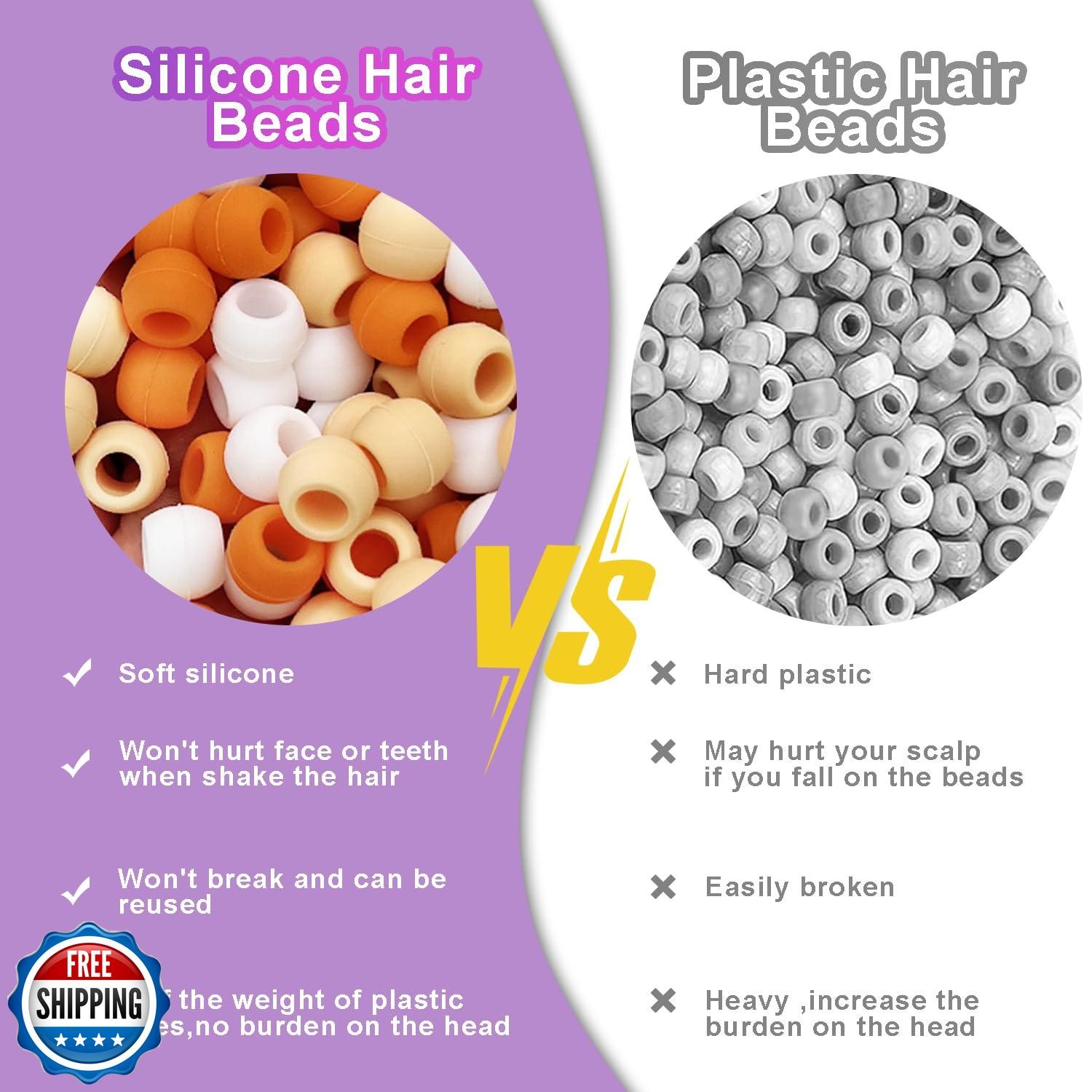 Silicone Hair Beads for Women Girls Braids, Soft Colorful Pony Beads Bulk for