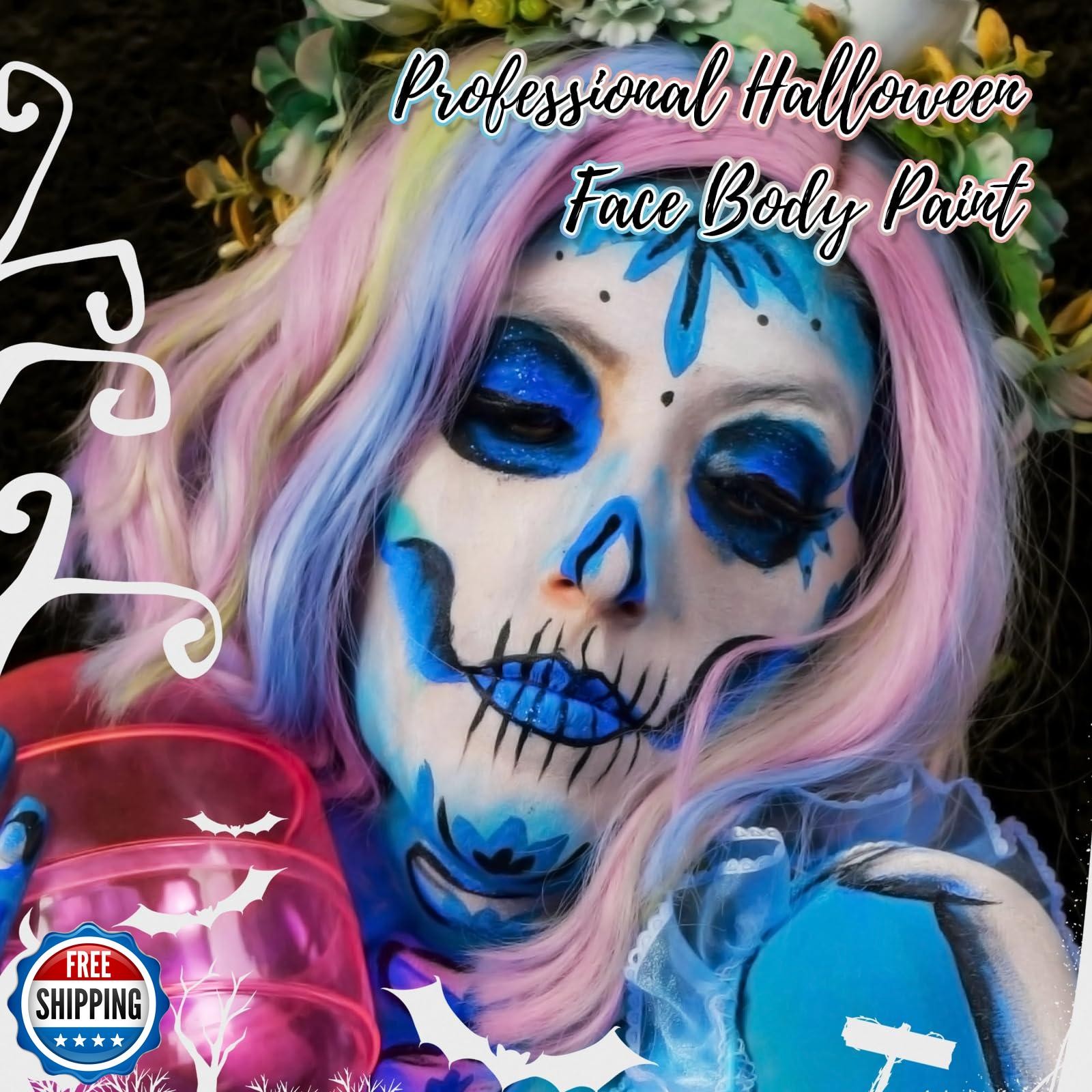 YBUETE Blue Water Based Face Body Paint, 2.37 OZ Large Tube Full Coverage Fac