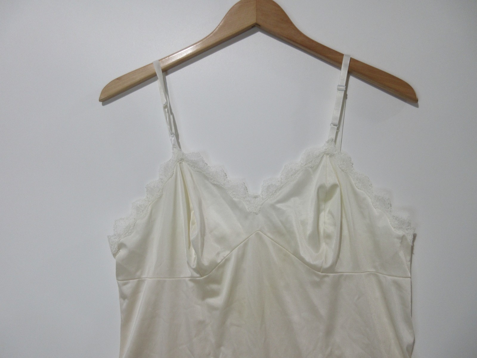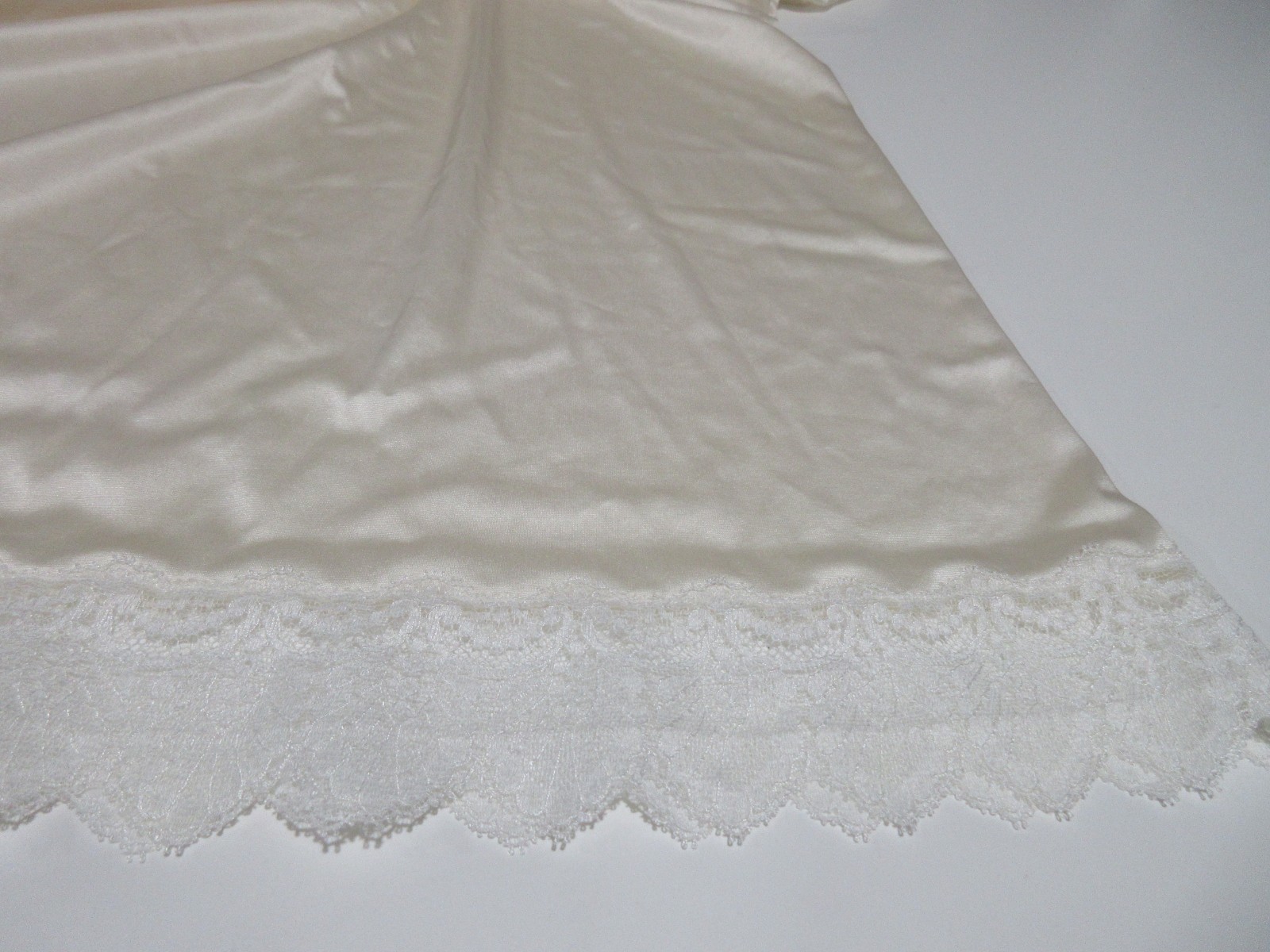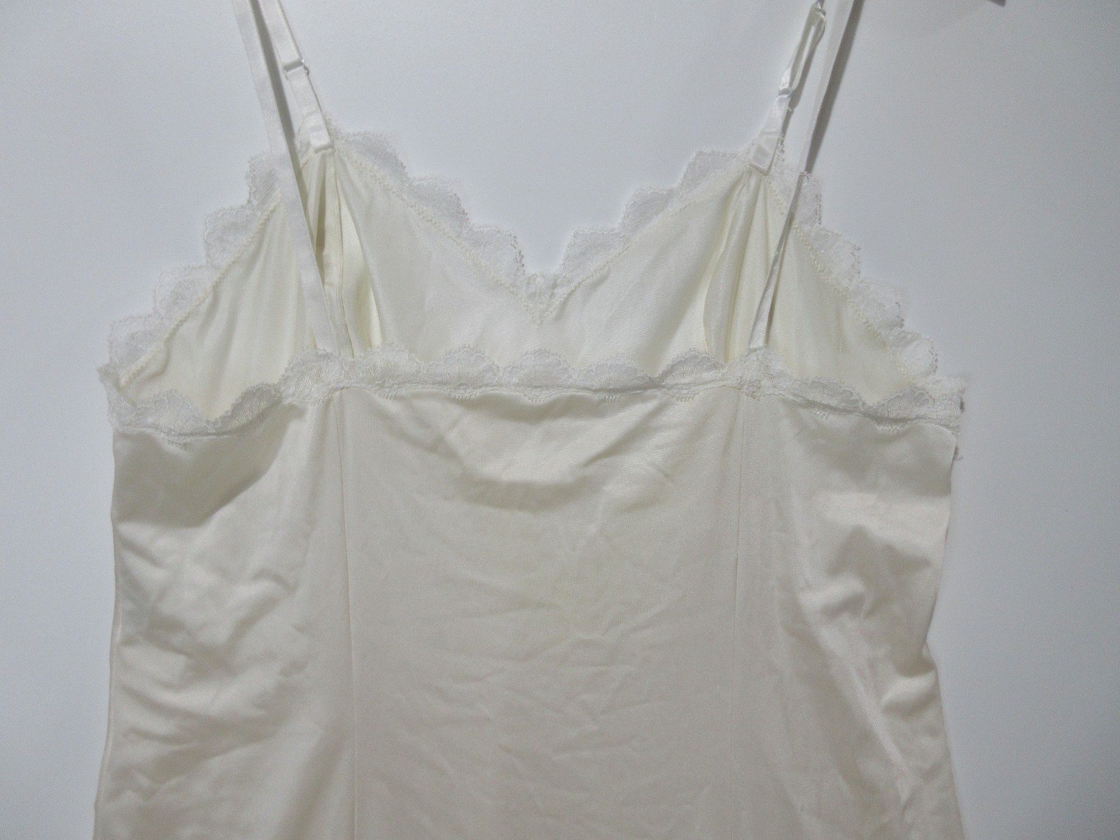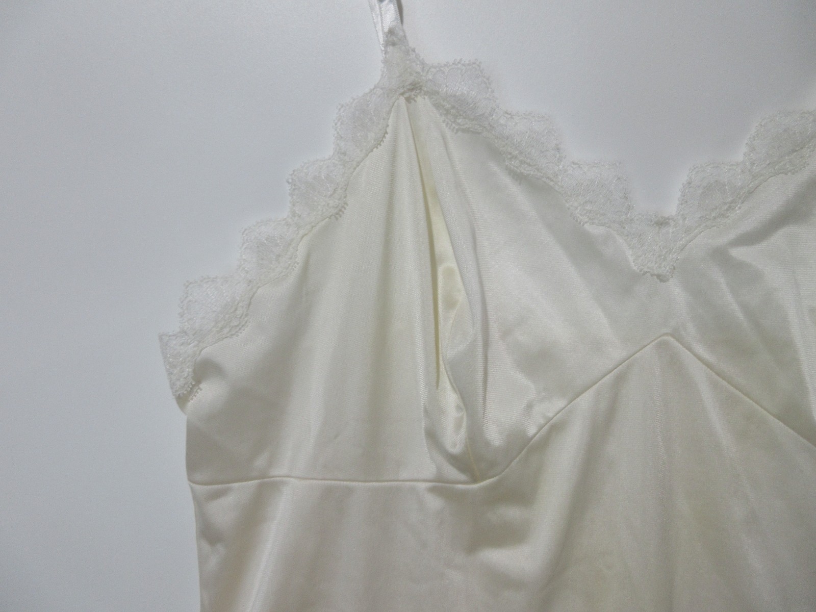 как выглядит Sz 38L Vtg Vanity Fair Nightgown Ivory Lace Trim Full Slip Dress Made in USA фото