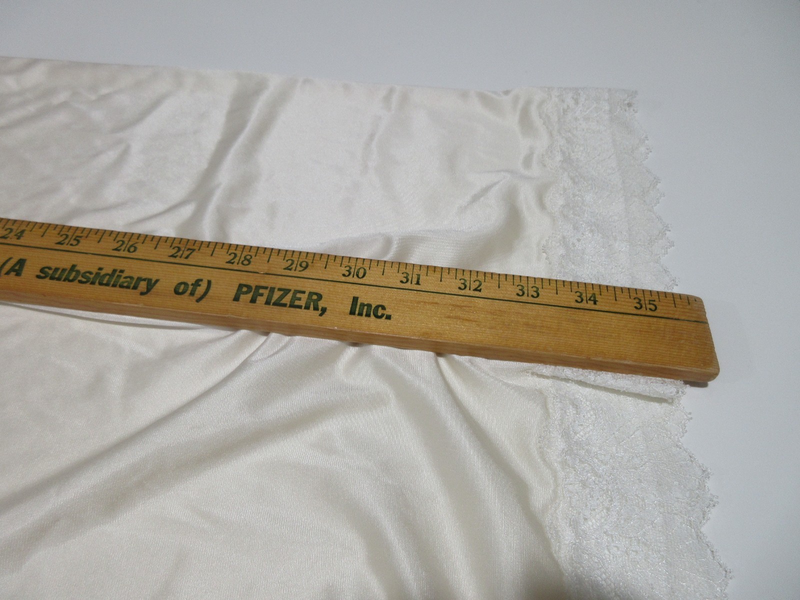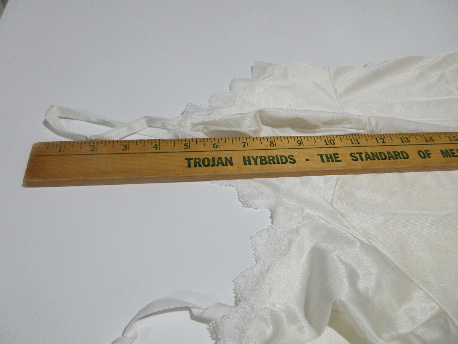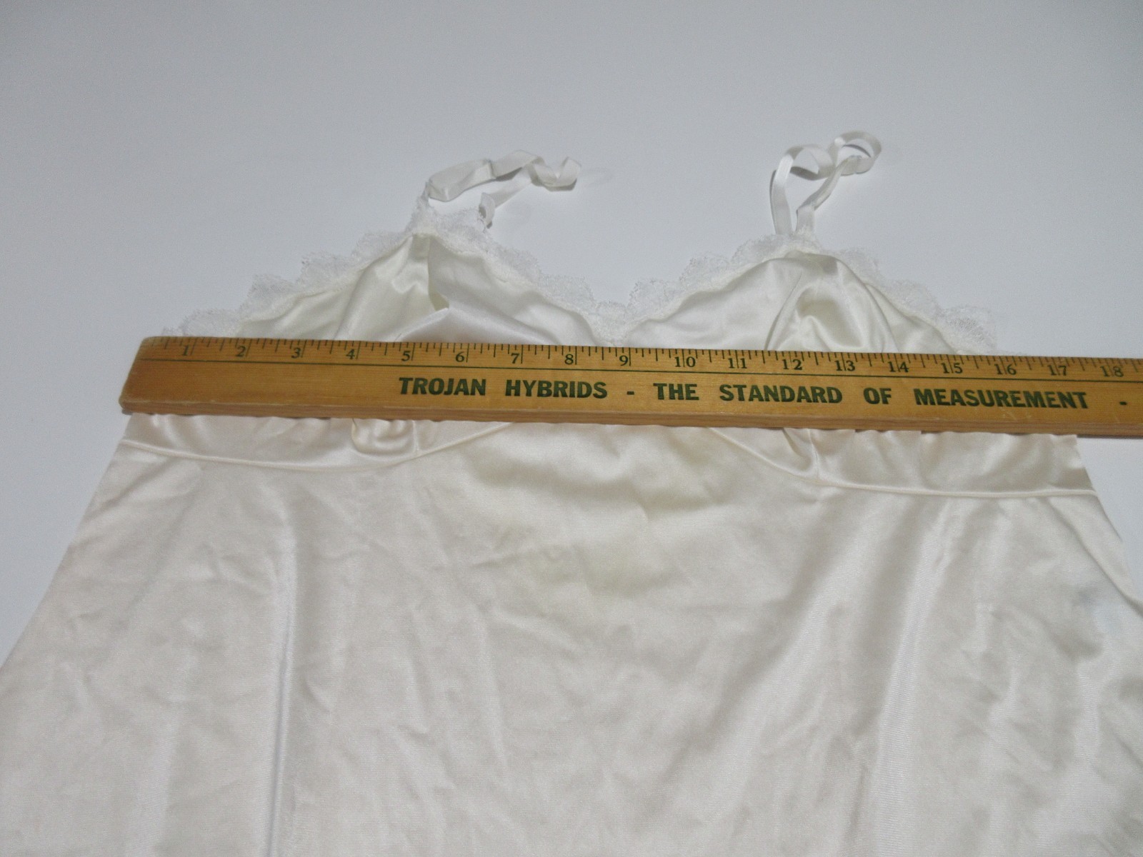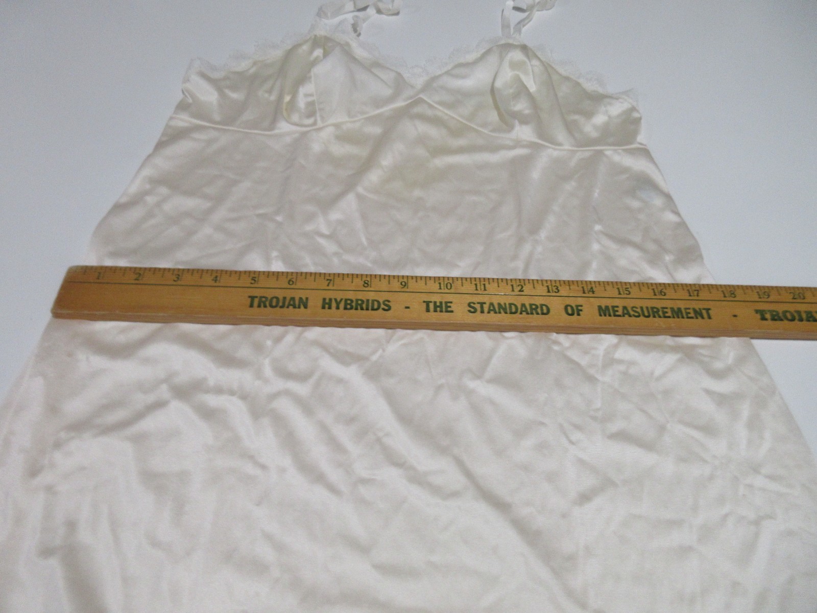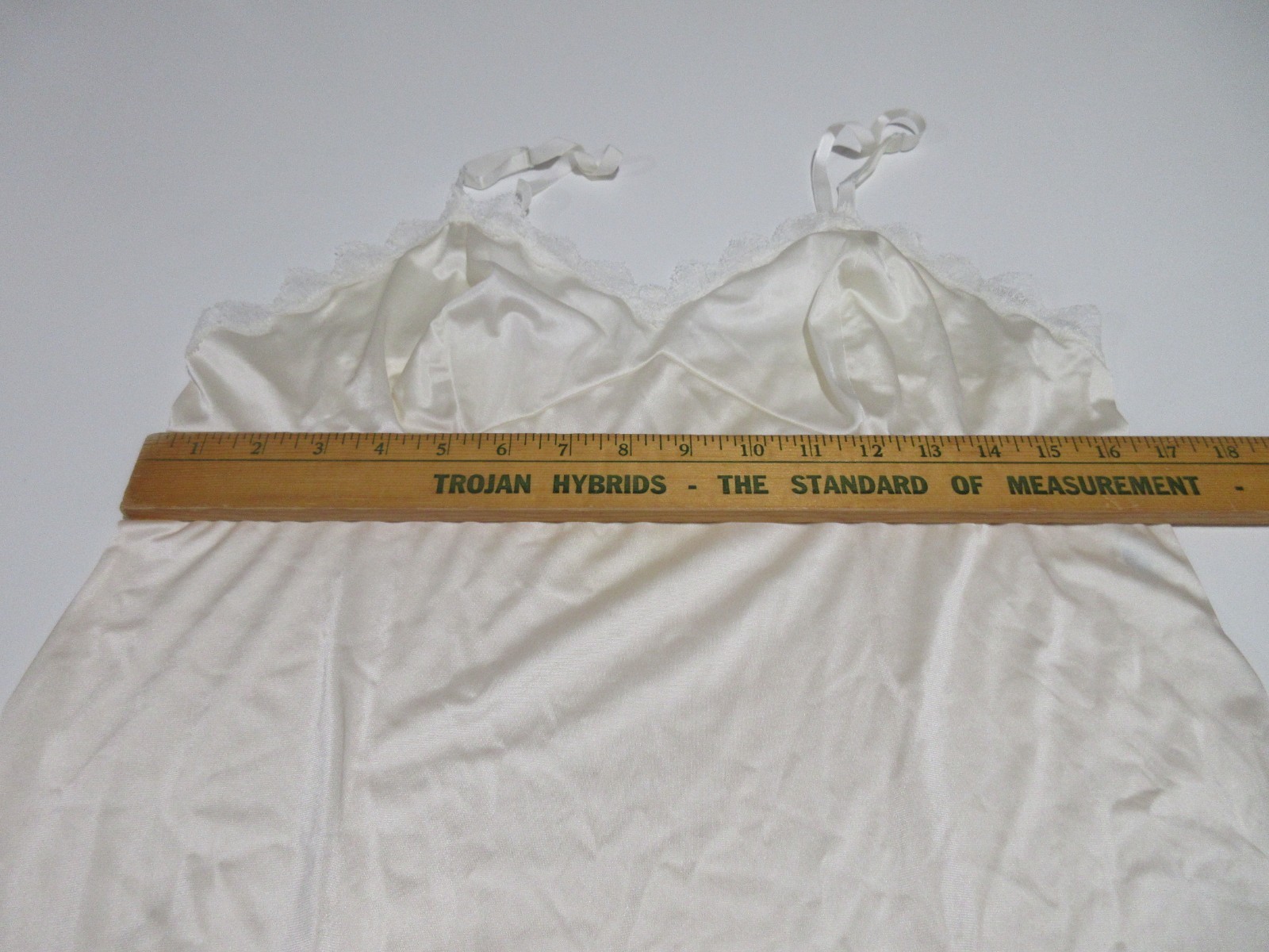 как выглядит Sz 38L Vtg Vanity Fair Nightgown Ivory Lace Trim Full Slip Dress Made in USA фото