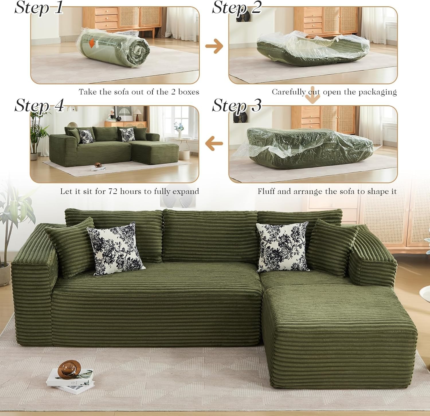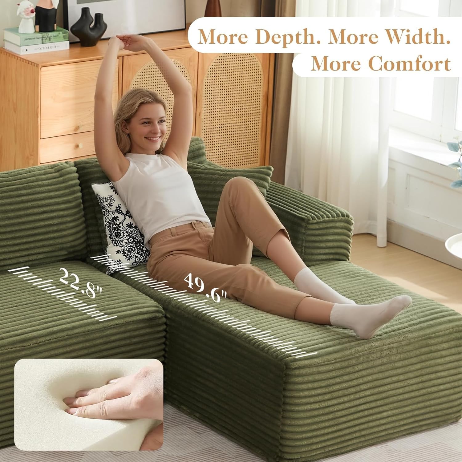 L-Shaped Sectional Sofa 106 Corduroy Cloud Modular Sectional Couch with Pillows
