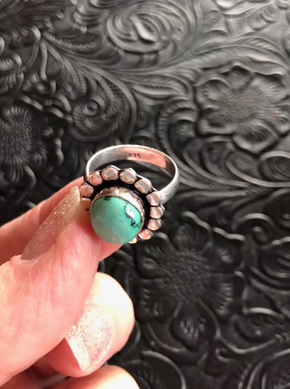 Artisan Southwest Blue Turquoise Cute Flower Design Ring Size 7