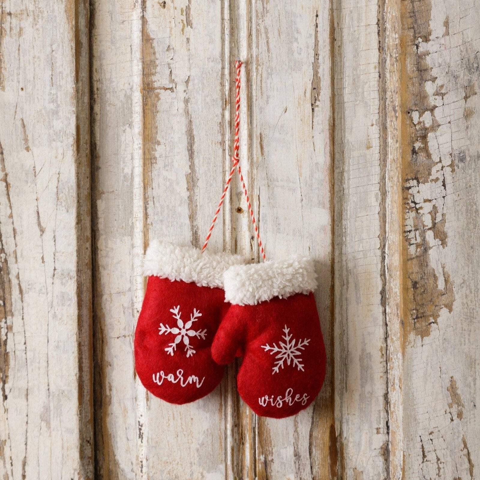 Primitive Christmas Warm Wishes Mitten Ornament 4.25