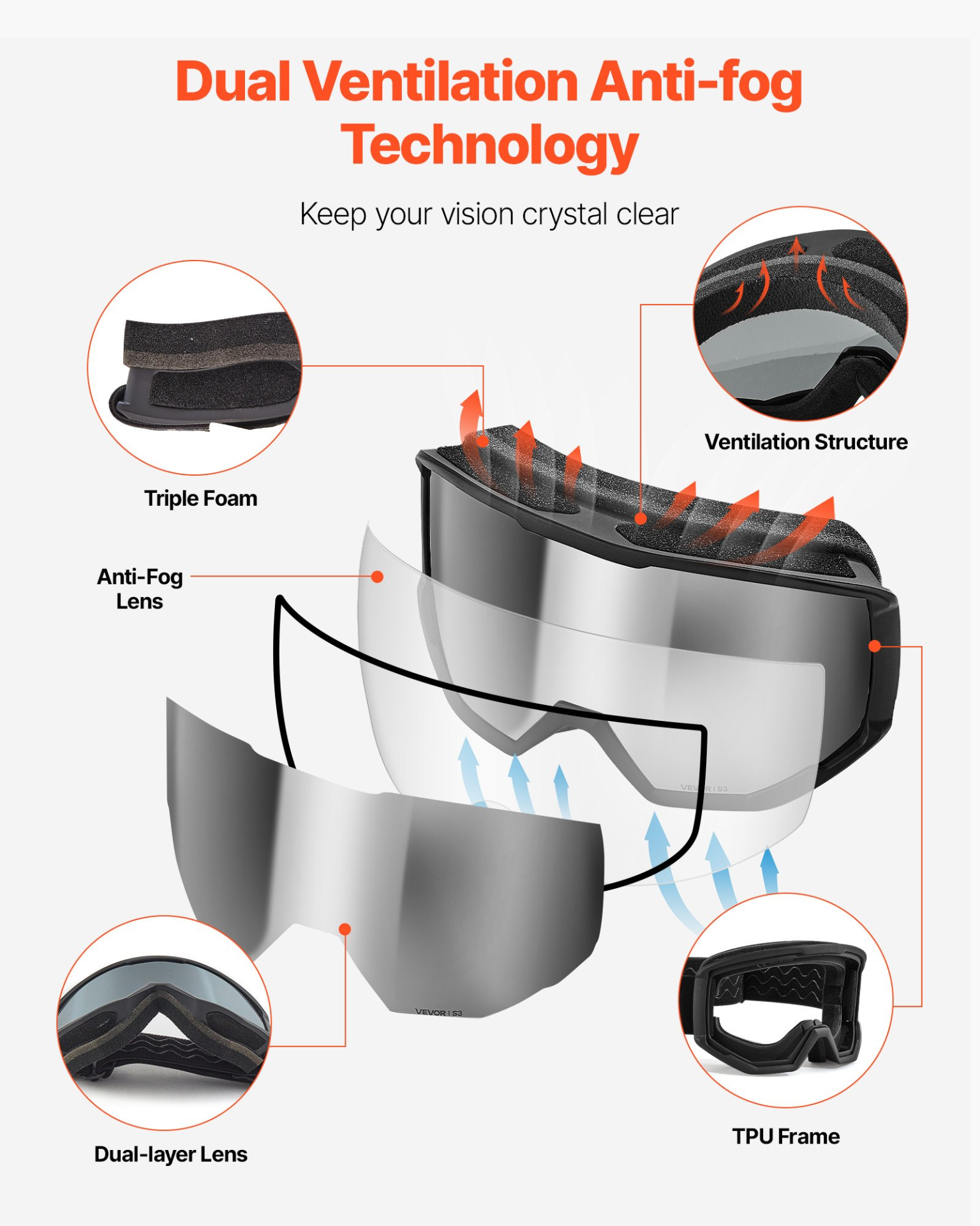 Ski Goggles Cylindrical Lens with Silver Mirror Revo Coating Snow Goggles