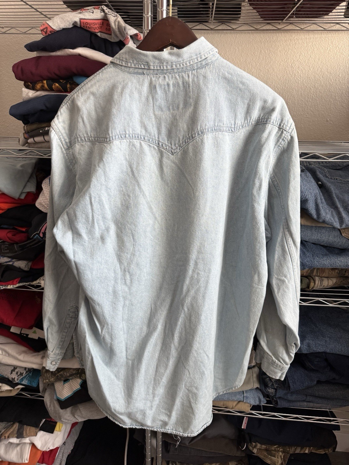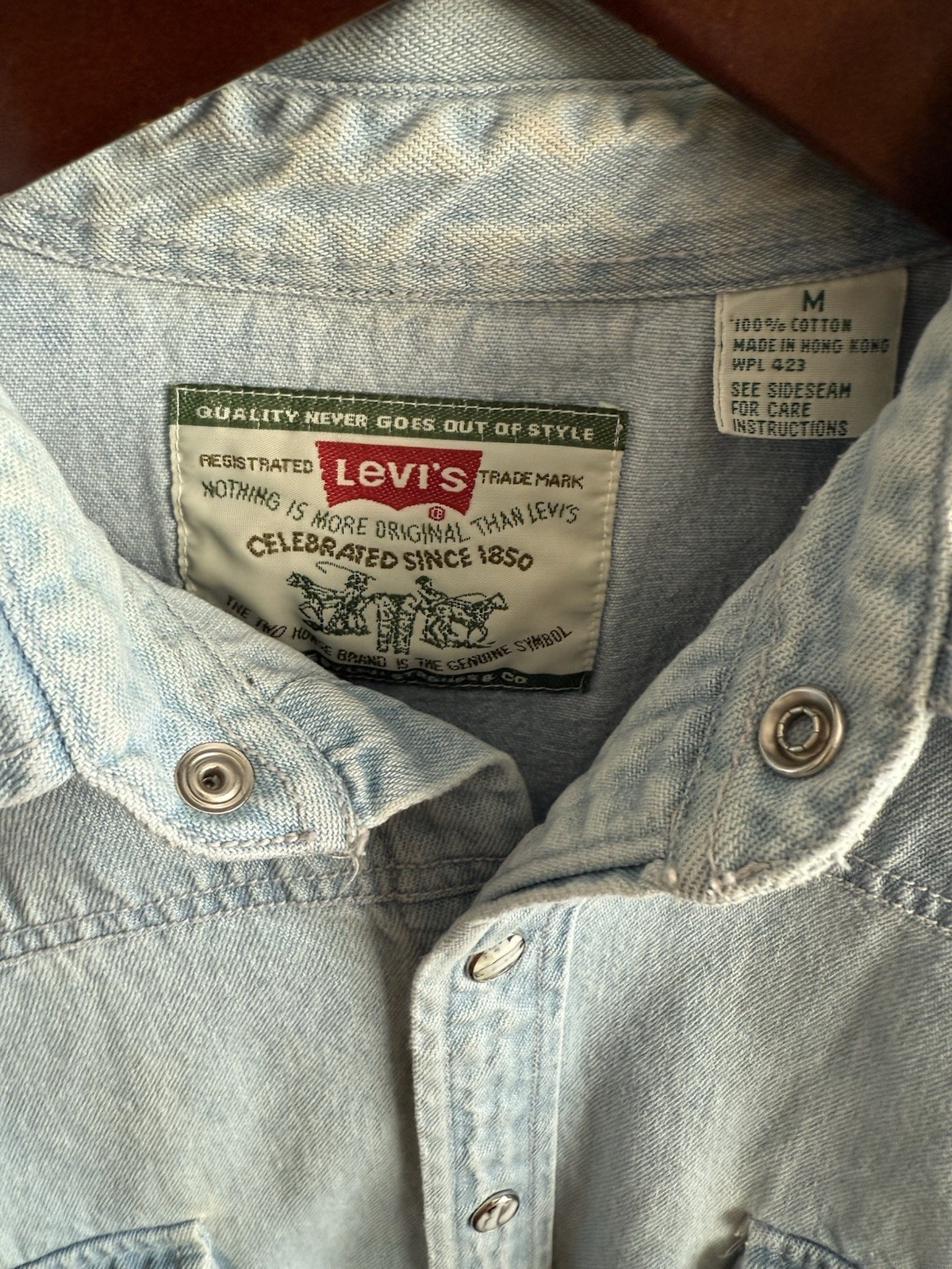 как выглядит Levis Light Wash Denim Button-Up Long Sleeve Shirt фото