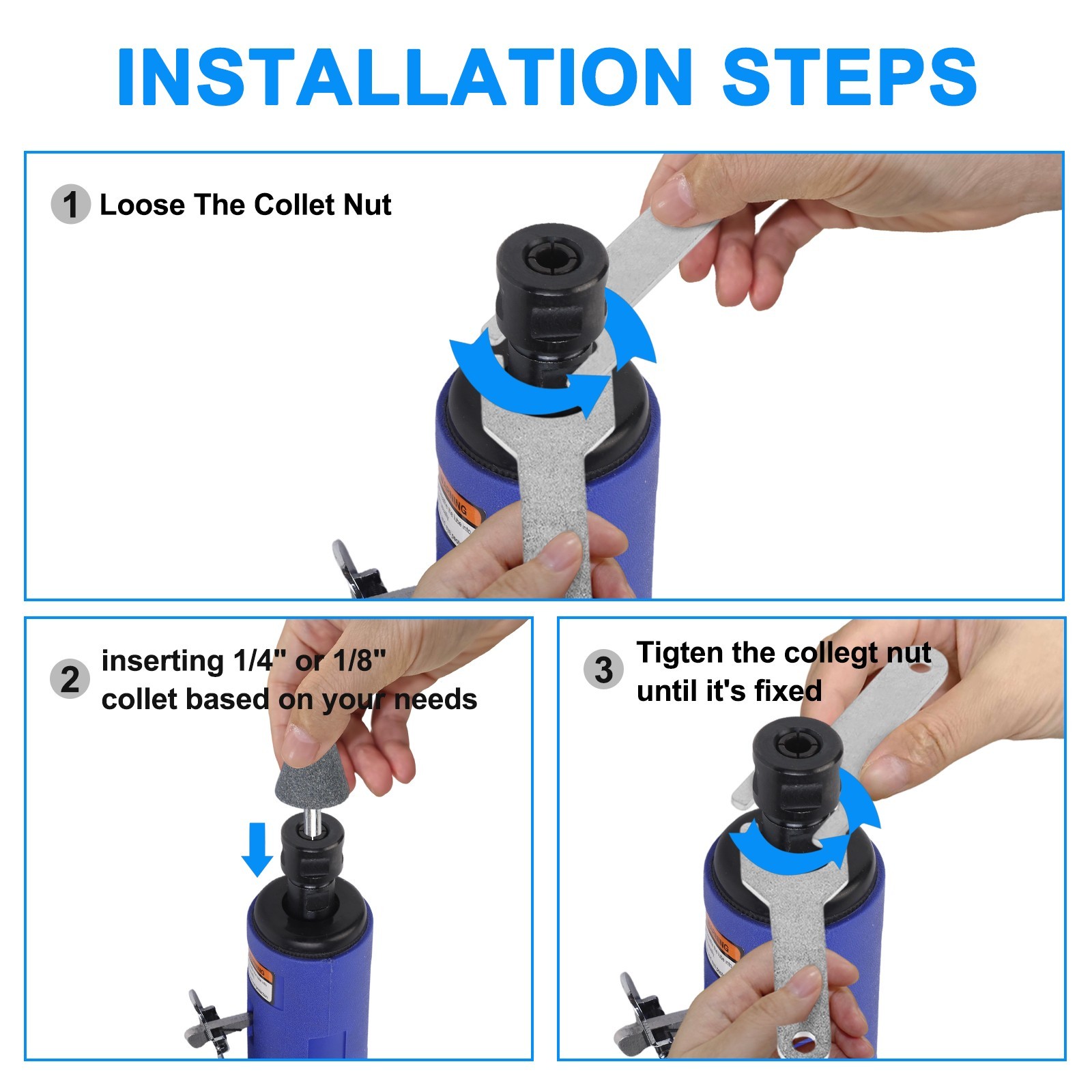 Air Die Grinder With 1/4 1/8 Collets 22000 RPM Pneumatic Die Grinder Kit
