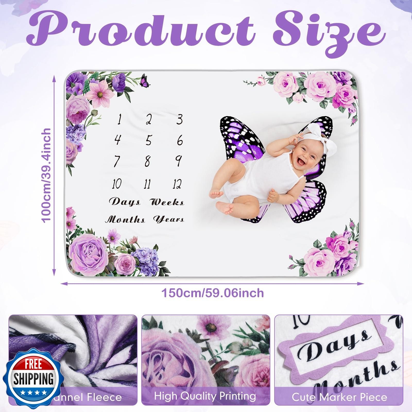 Chumia Baby Monthly Milestone Blanket for Baby Girl 59 x 39 Floral Butterfl