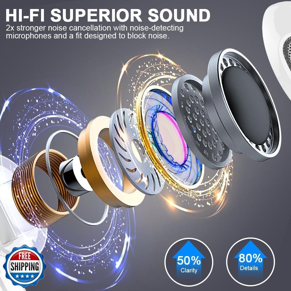 Wireless Earbud Bluetooth 5.3 Headphones 50H Playtime Stereo Bass Ear Buds, i