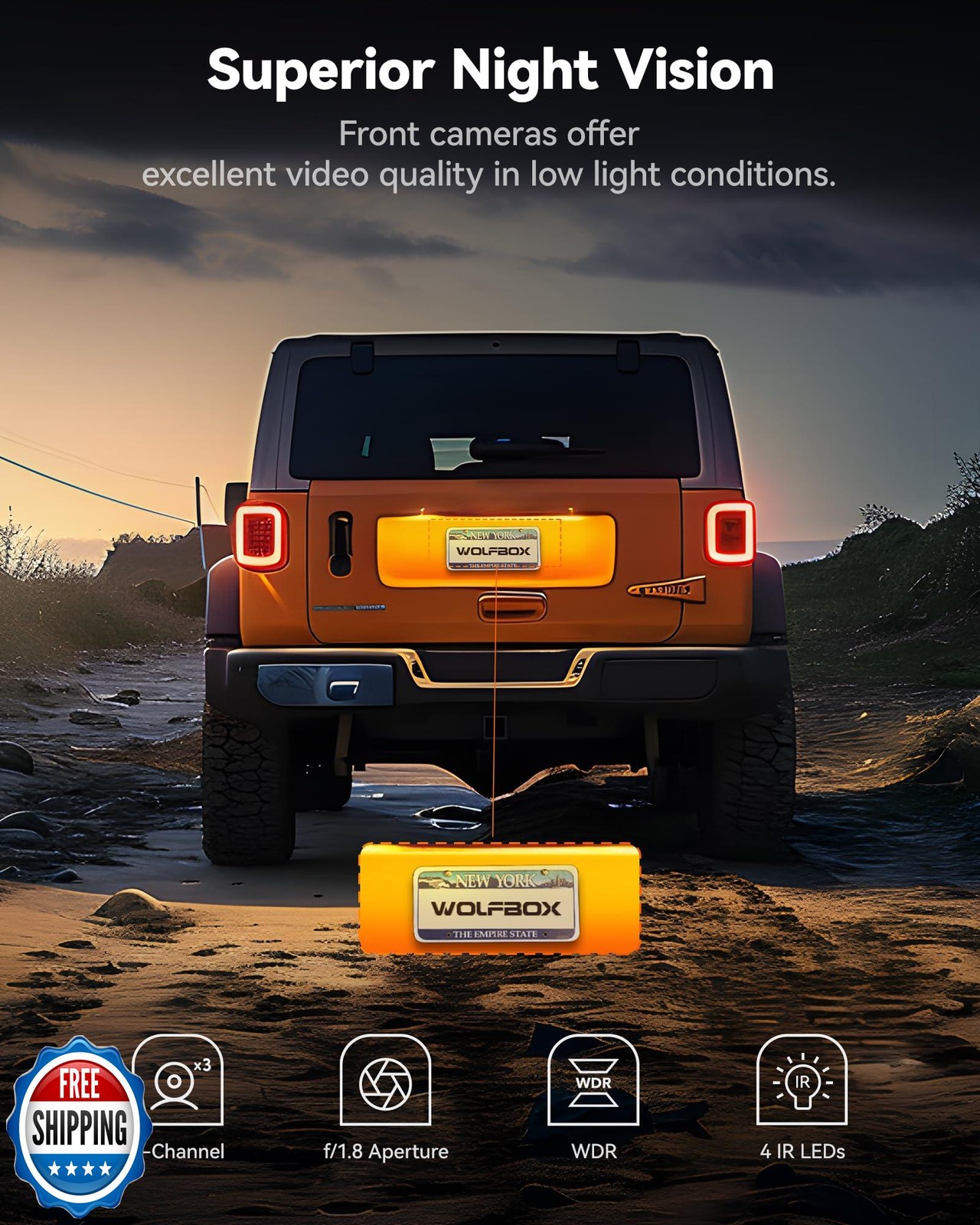 WOLFBOX i17 4K 3 Channel Dash Cam, 5.8GHz WiFi and GPS with 64GB Card, 4K 108