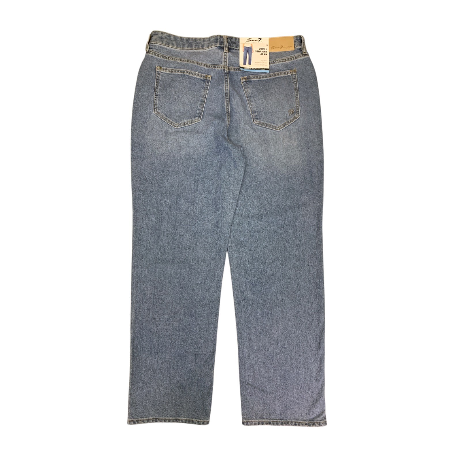как выглядит Seven7 Womens High Rise Fitted Waist Loose Fit 5 Pocket Straight Jean фото