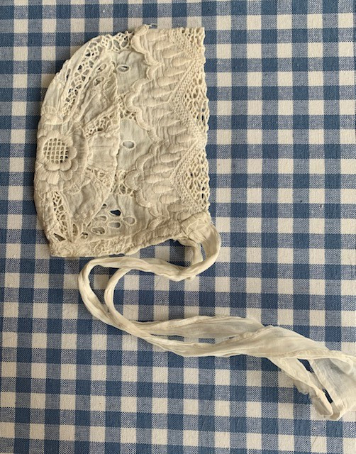 Antique VICTORIAN Baby Doll Infant Christening BONNET Cap Vtg Embroidery Eyelet