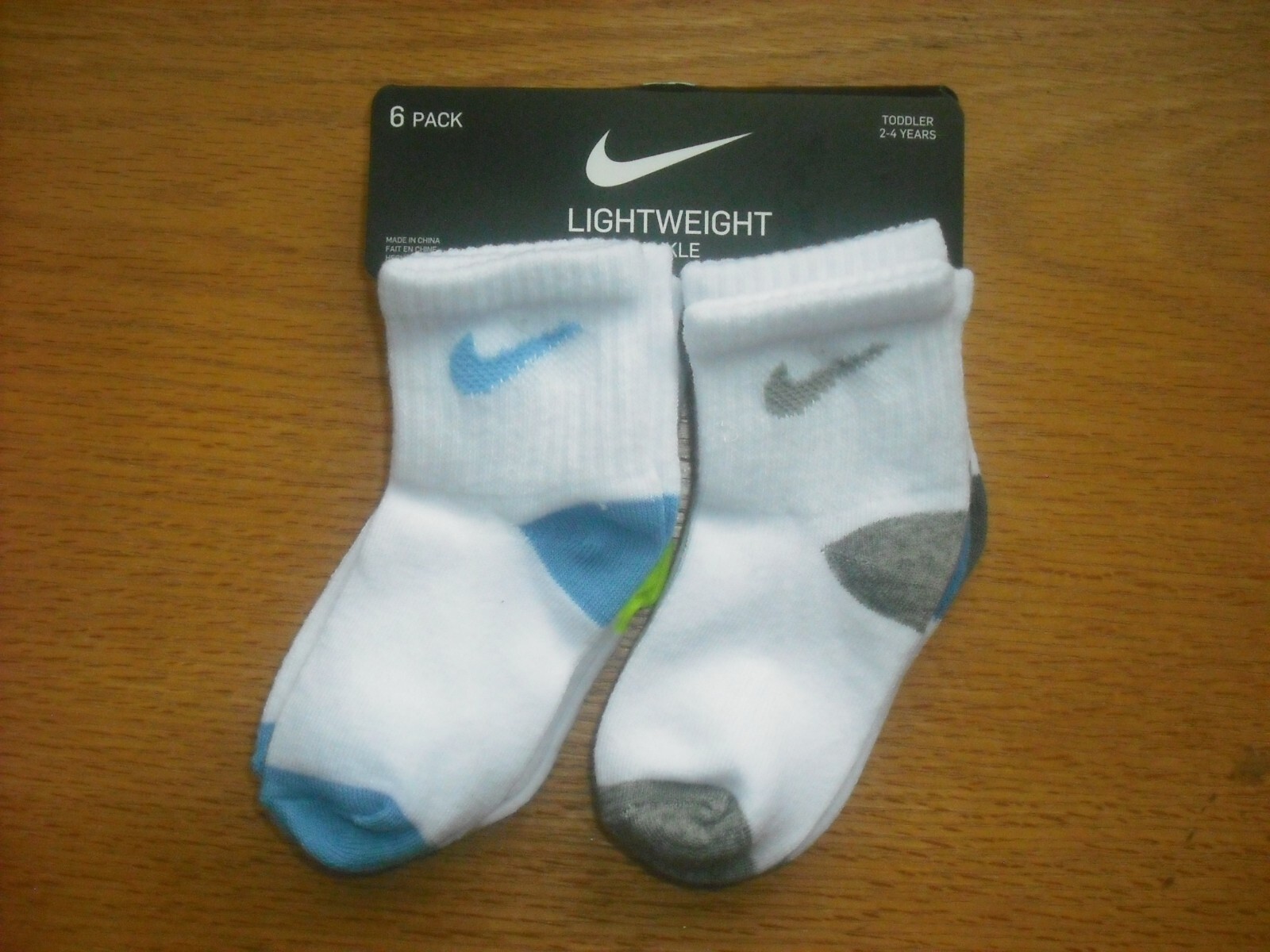 Toddler Boys/Girls NWT NIKE Socks Ankle 6prs White w/Blue Neon Yellow Ages 2-4
