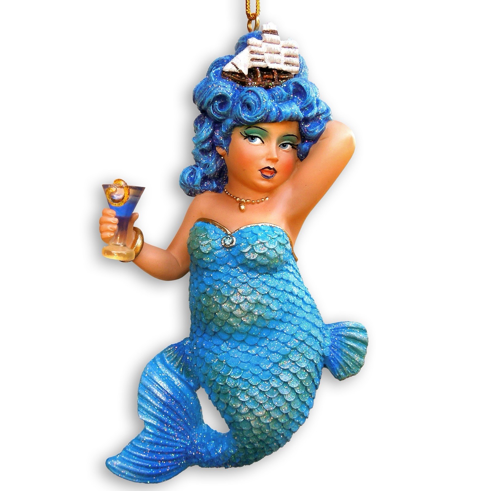 December Diamonds Rough Waters Mermaid Ornament 55-55058 Pirate Ship in Hair