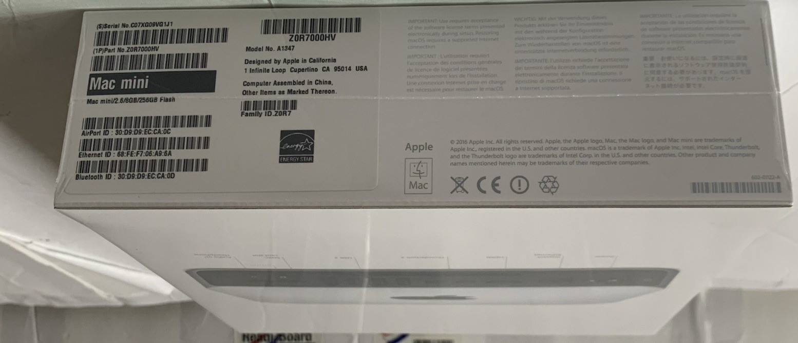 Apple Mac mini 256 GB Flash, Intel Core i5, 2.60GHz, 8GB - Factory Sealed