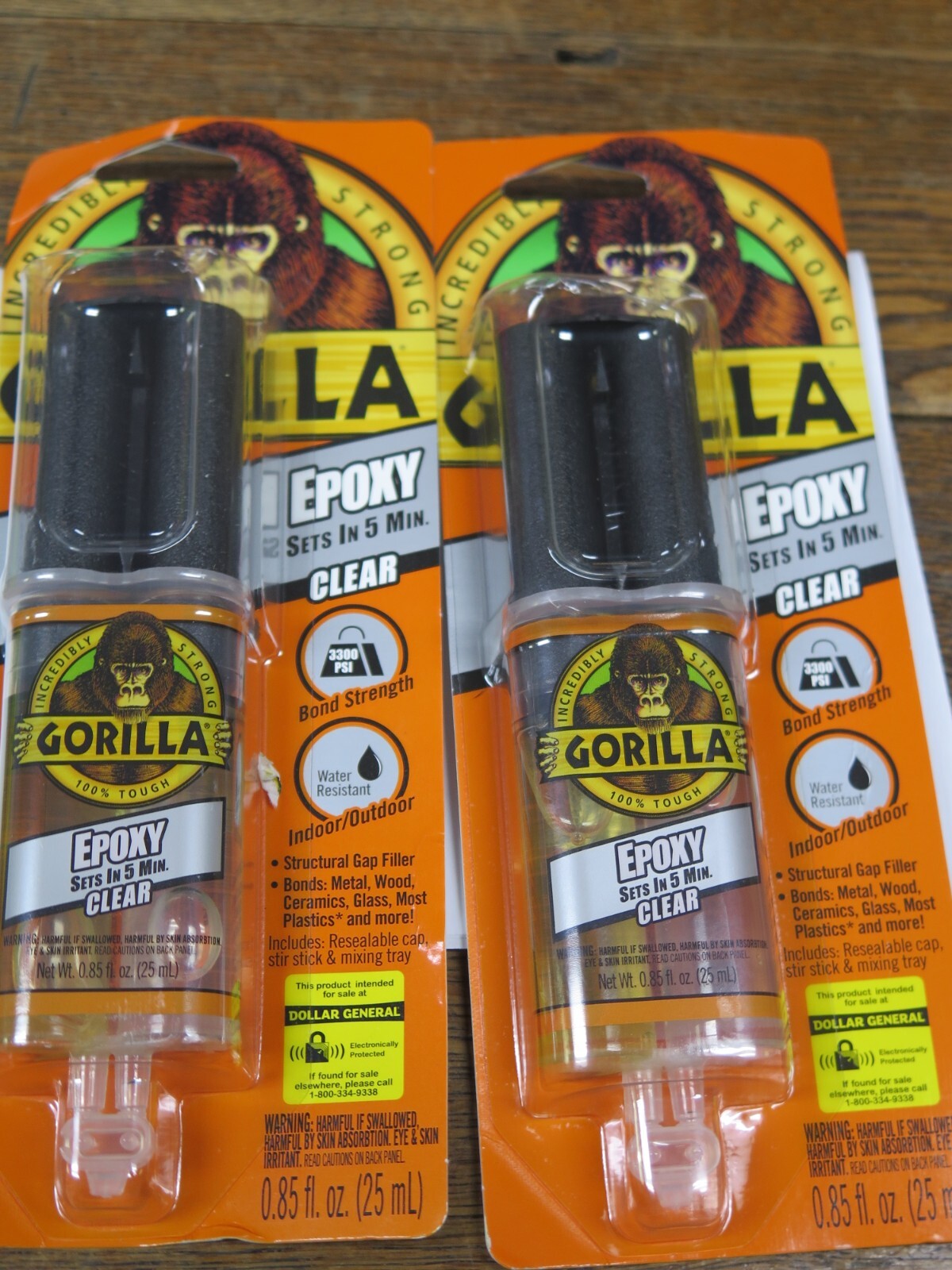 Gorilla Epoxy Glue Syringe Super Strong Bond Sets in 5 Min. .85 Oz Clear, 2-Pack