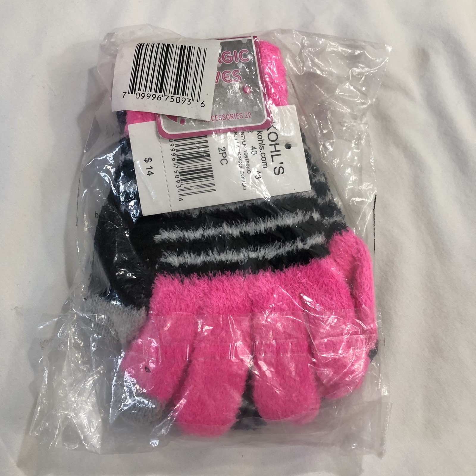 A22 Accessories Magic Gloves Girls One Size Black Pink Gray 2 Pack Winter