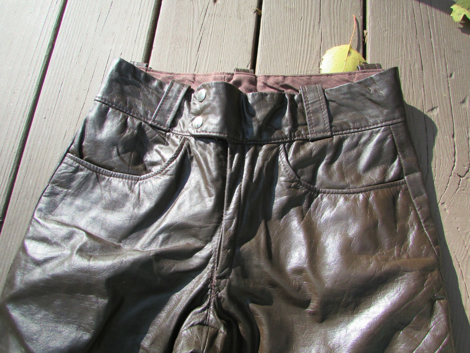 Vintage Brown Leather Motorcycle Pants Boot Cut Size S/M Lined Leg 29 x 30