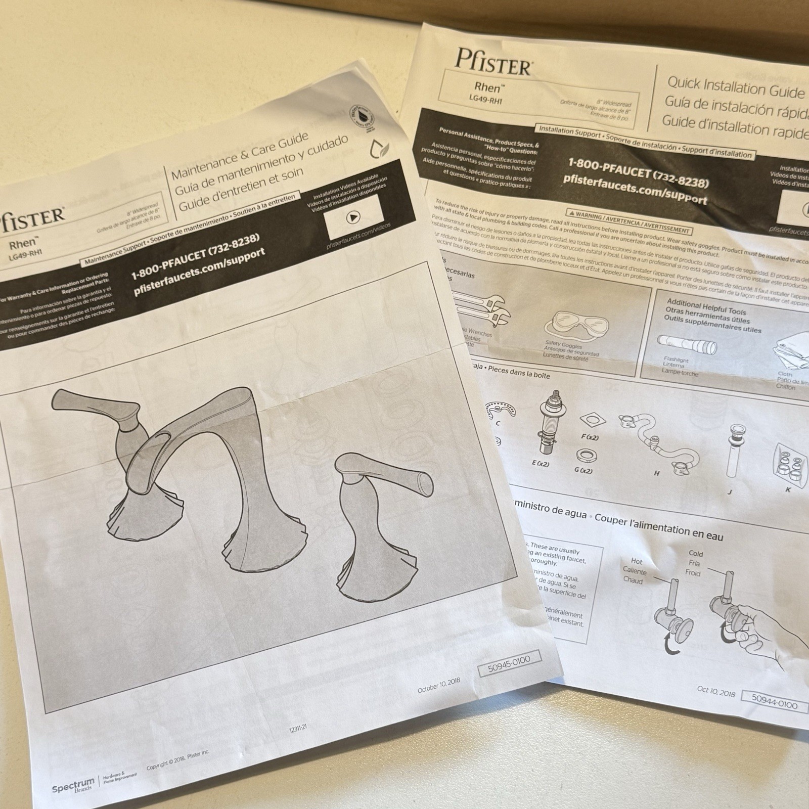 Pfister Rhen Polished Chrome 8 Widespread Bathroom Faucet LG49-RH1C Open Box