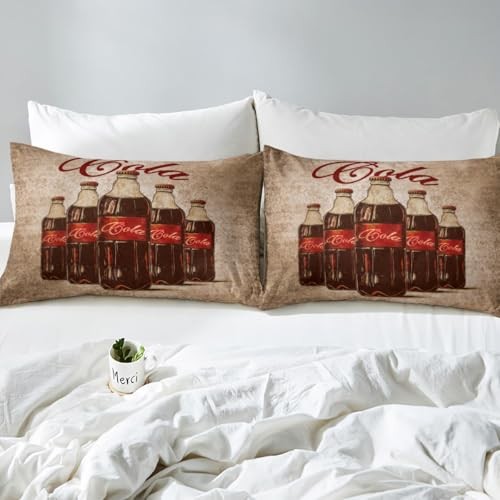 Kids Cola Bedding Set Size, Vintage Sheet Set Drinks Bed Sheets Twin Dark Red